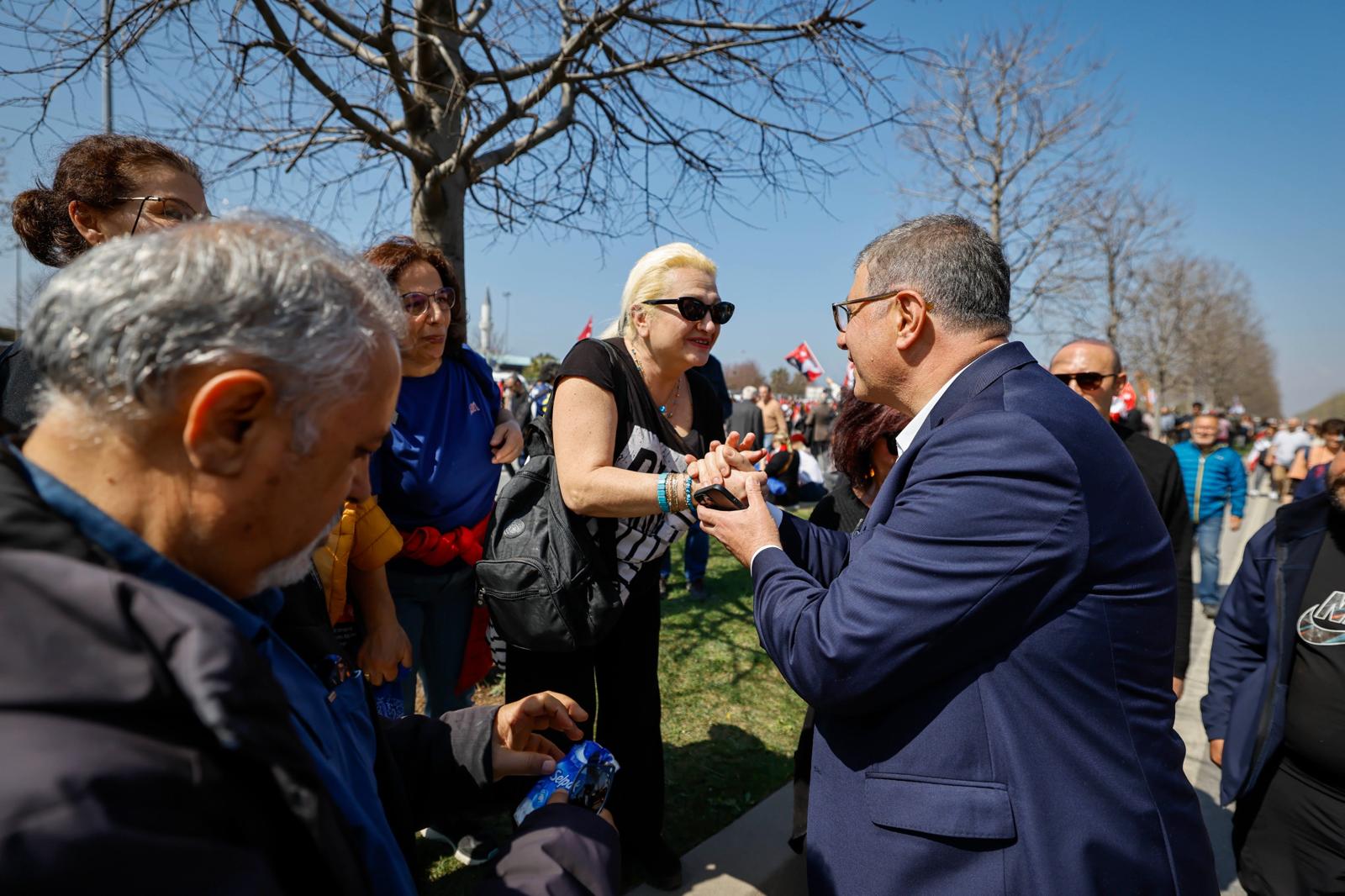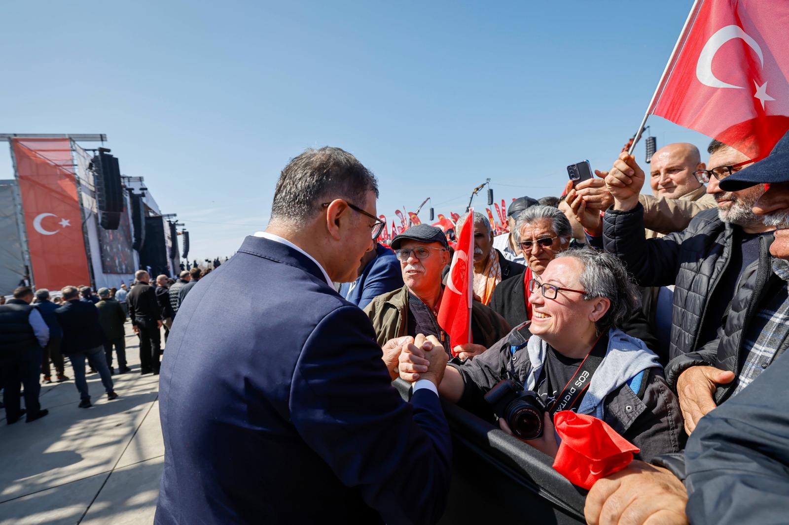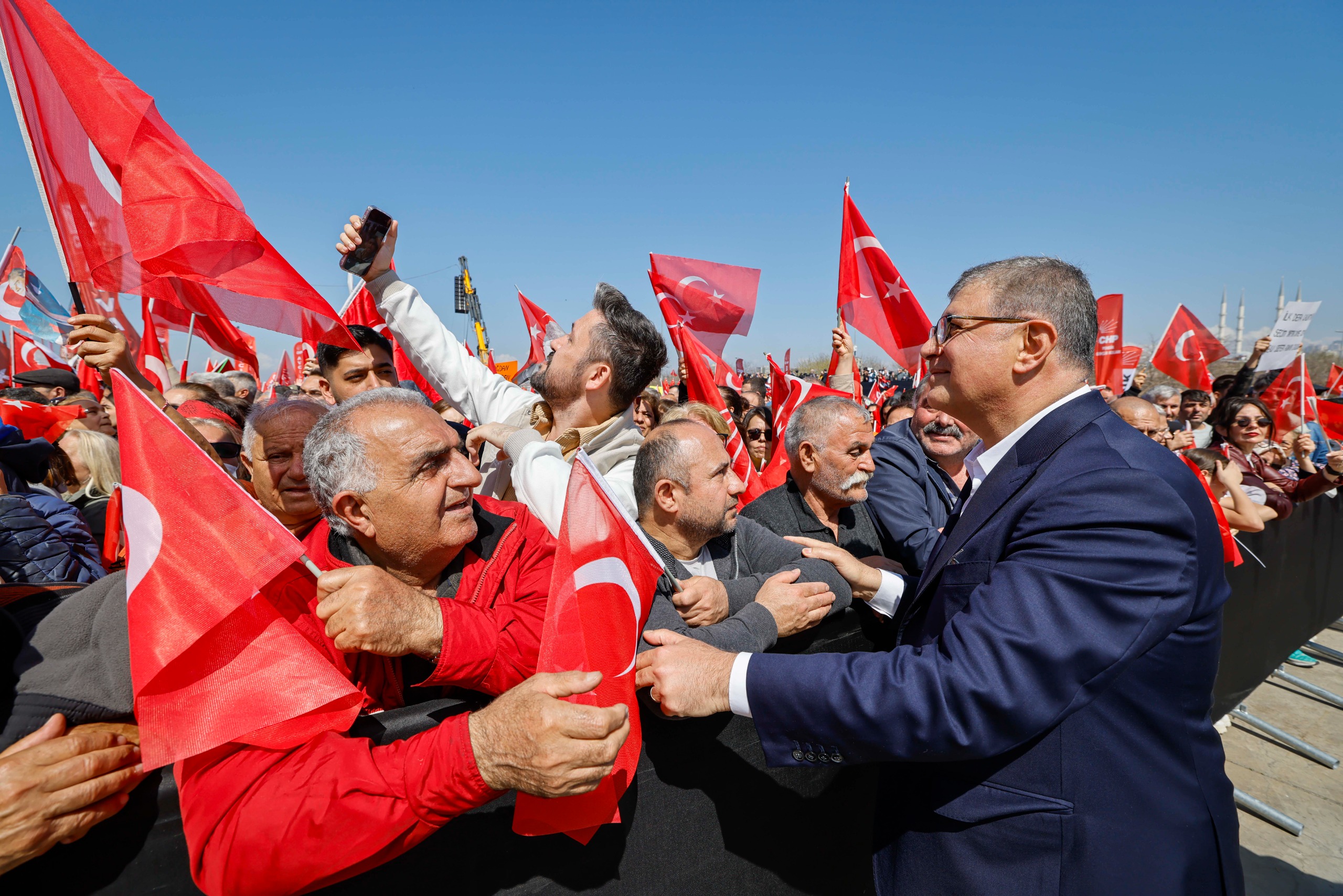 İstanbul Maltepe, CHP’nin Cumhurbaşkanı adayı ve İstanbul Büyükşehir Belediye Başkanı Ekrem İmamoğlu’nun tutuklanmasını protesto eden iki milyon vatandaşın mitingine sahne oldu. CHP Genel Başkanı Özgür Özel'in önemli açıklamalarda bulunduğu mitinge, İzmir Büyükşehir Belediye Başkanı Dr. Cemil Tugay da katılarak adalet ve demokrasi mesajı verdi. Başkan Tugay vatandaşlarla selamlaşarak fotoğraf çekildi. Ülkenin dört bir yanından gelerek alanı dolduran vatandaşlar, ellerindeki Türk bayrakları ve dövizlerle sloganlar attı.
