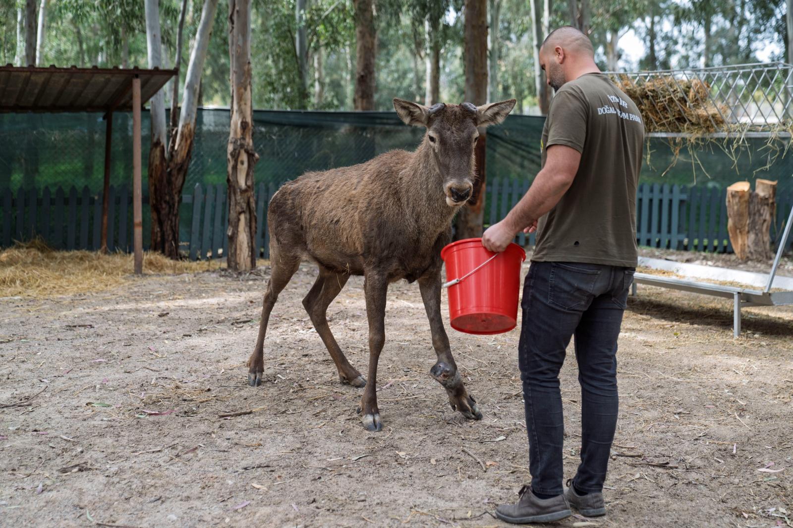 Geyik için özel bir barınak yapıldığını belirten Şükrü Erdem Onur, “Doğa Koruma ve Milli Parklar Şube Müdürlüğü ile yaptığımız iş birliği sonucu, hayvanın Doğal Yaşam Parkı’nda kalmasına karar verildi. Biz de kendisine konforlu bir alan yarattık. Tedavisini sürdürüyoruz. Şimdi ona burada daha iyi nasıl bakarız diye çabalıyoruz. İzmir Doğal Yaşam Parkı’nda geldiği günden bu yana geyiğe en iyi şartlarda bakıyoruz. Bundan sonra da burada en iyi şartlarda hayatını devam ettirecek” diye konuştu.