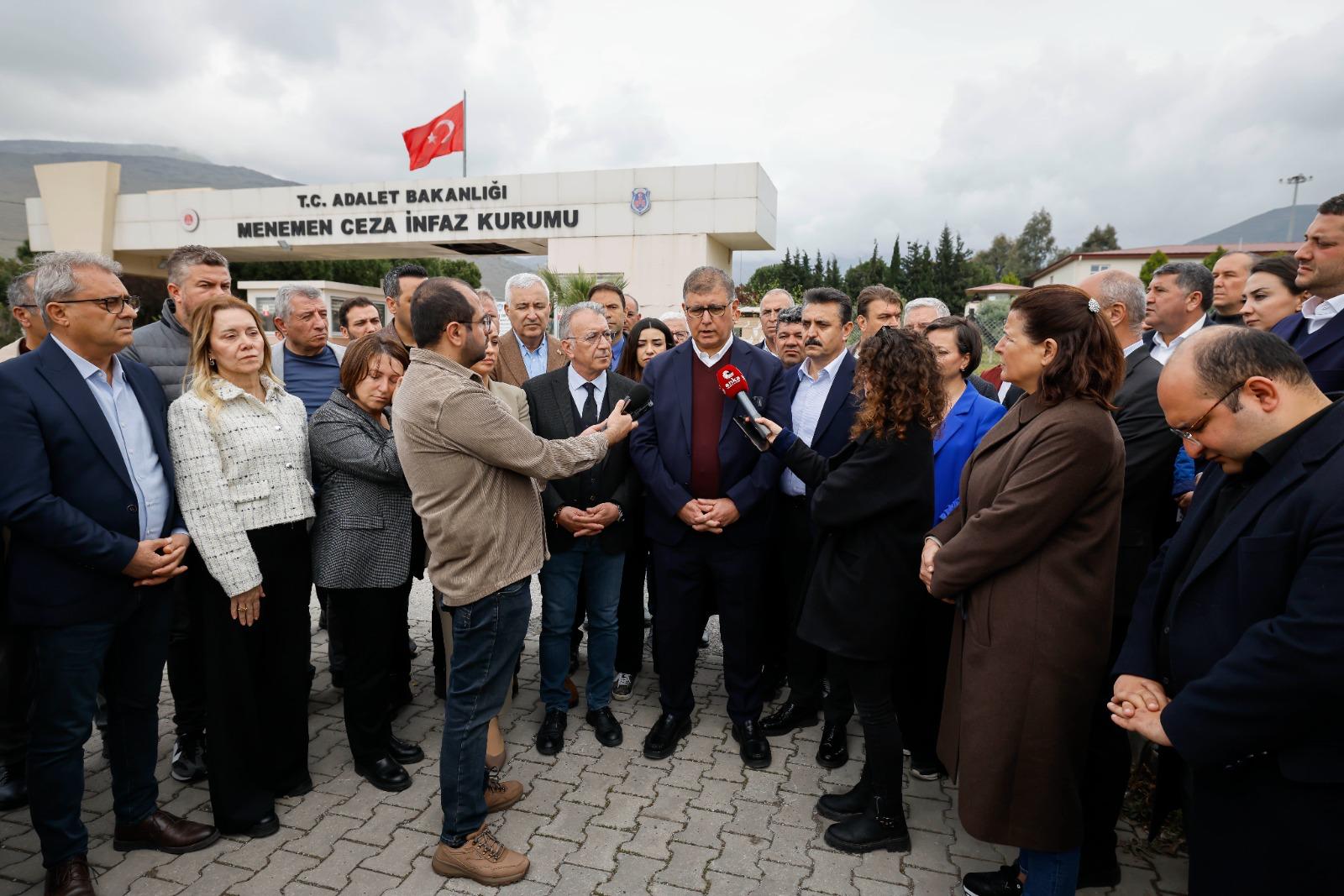 İzmir Büyükşehir Belediye Başkanı Dr. Cemil Tugay, tüm CHP’li ilçe belediye başkanları ve İzmir Barosu’ndan bir heyet ile İzmir’deki Ekrem İmamoğlu protestolarında tutuklanarak Menemen Cezaevi’ne götürülen 17 genci ziyaret etti. Başkan Tugay, cezaevinde gençlerle görüştükten sonra cezaevi koşulları, işkence iddiaları ve tutuklu yakınlılarının taleplerini cezaevi yönetimine iletti. Ziyaret sonrası açıklama yapan Başkan Tugay, “Gençlerin anayasal hakkını kullandı diye tutuklanması, kötü muameleye maruz kalması kabul edilemez. Bu bir mücadele alanıdır. Mücadeleyi hiçbir zaman bırakmayacağımızı, üstümüze düşen sorumlulukları yerine getireceğimizi herkesin bilmesini isterim” dedi.