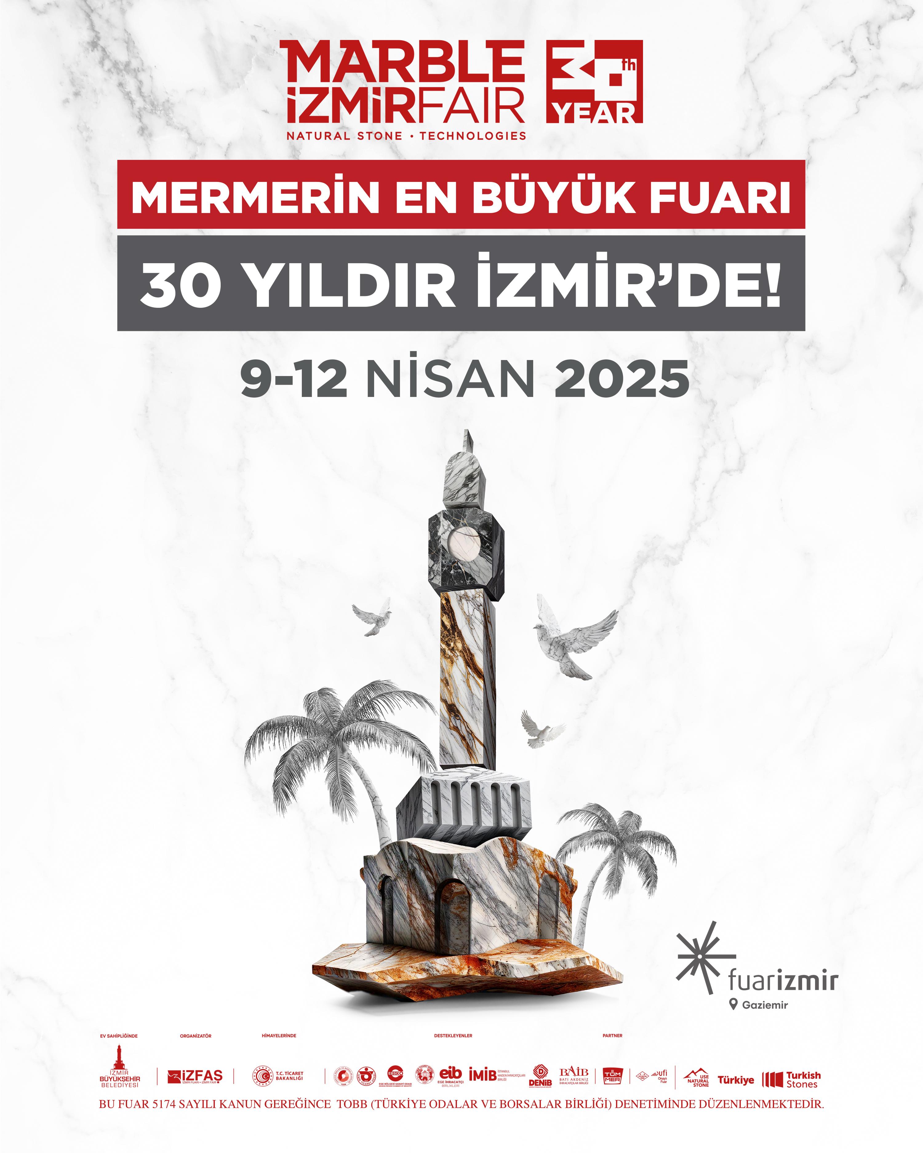 İzmir Büyükşehir Belediyesi'nin ev sahipliğinde, İZFAŞ tarafından düzenlenen Marble İzmir Uluslararası Doğaltaş ve Teknolojileri Fuarı için geri sayım başladı. 9 – 12 Nisan 2025 tarihleri arasında Fuar İzmir'de düzenlenecek fuarda doğal taş ile makine ve teknoloji firmaları kendilerine ayrılan alanları doldurmaya başladı. 150 bin metrekareyi aşan açık ve kapalı alanda binin üzerinde katılımcının yer alacağı Marble İzmir, dört gün boyunca Türkiye ve dünyanın dört bir yanından ziyaretçileri ağırlayacak. Blok mermer alanında renk renk, çeşit çeşit yüzlerce blok doğal taş ziyaretçilere görsel şölen yaşatacak.