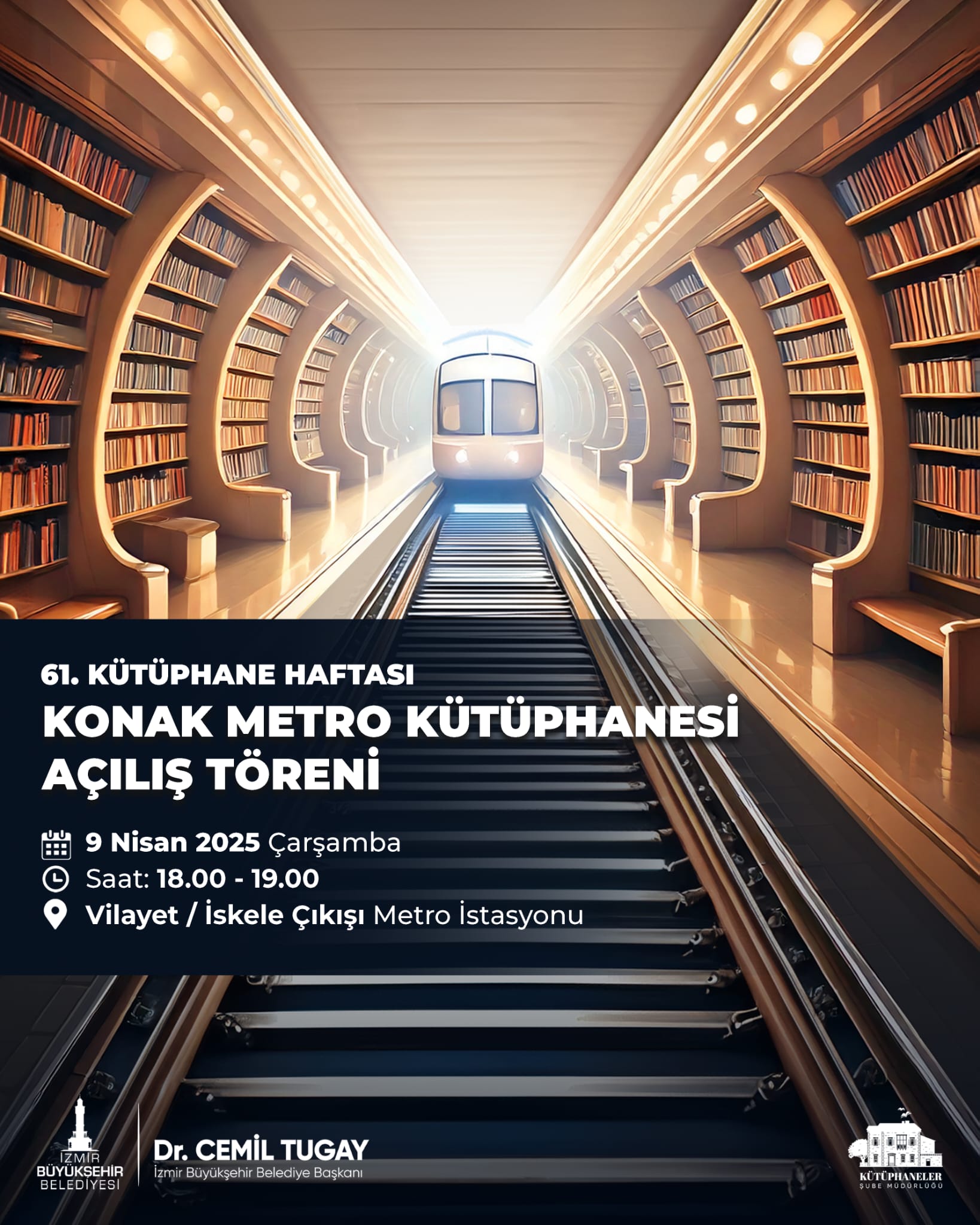 8 Nisan Salı günü saat 10.30’da Kent Kütüphanesi’nde Masal Atölyesi yapılacak. Saat 15.00’te ise Menemen Gençlik Kütüphanesi’nde Çocuk Şenliği var. Şenlikte Gezici Kütüphane eşliğinde çocuk ve gençlere yönelik tiyatro gösterisi ve performans sanatları yer alacak. 9 Nisan Çarşamba günü ise Konak Metro Kütüphanesi açılacak. Açılış, saat 18.00’de Konak Metro İstasyonu’nun Vilayet/İskele çıkışında düzenlenecek. Konak Metro Kütüphanesi, Türk ve dünya edebiyatından oluşan bin 400 kitap ve 12 kişilik çalışma alanı ile halkın hizmetine açılacak. Ayrıca şair ve yazar Süreyya Berfe'nin kişisel kütüphanesinden bağışladığı 400 kitap ve özel eşyalarından oluşan bir bölüm de Konak Metro Kütüphanesi’nin girişinde sergilenecek.