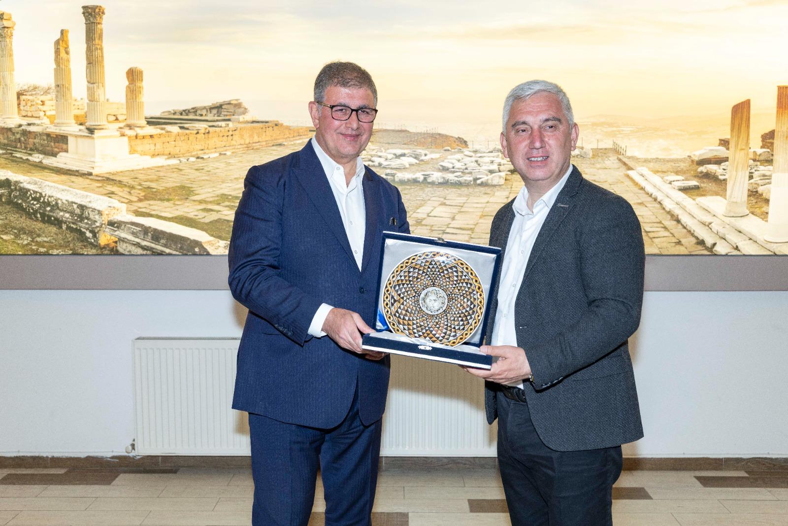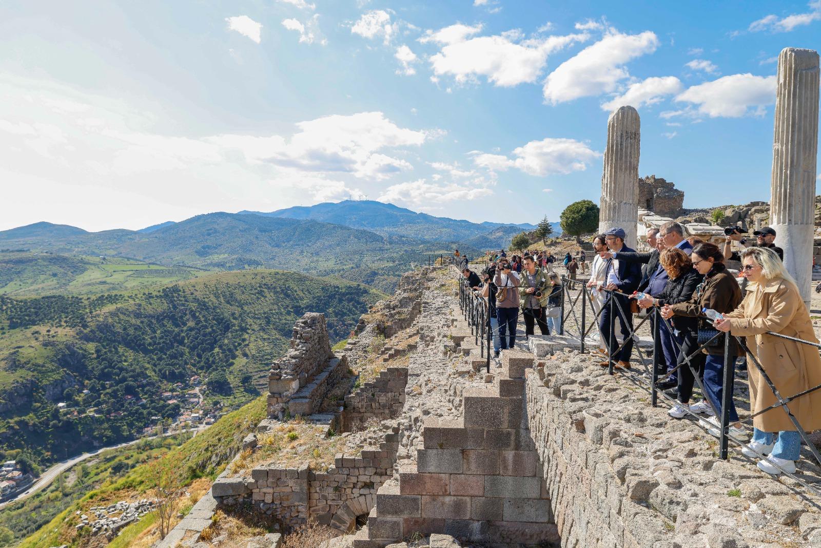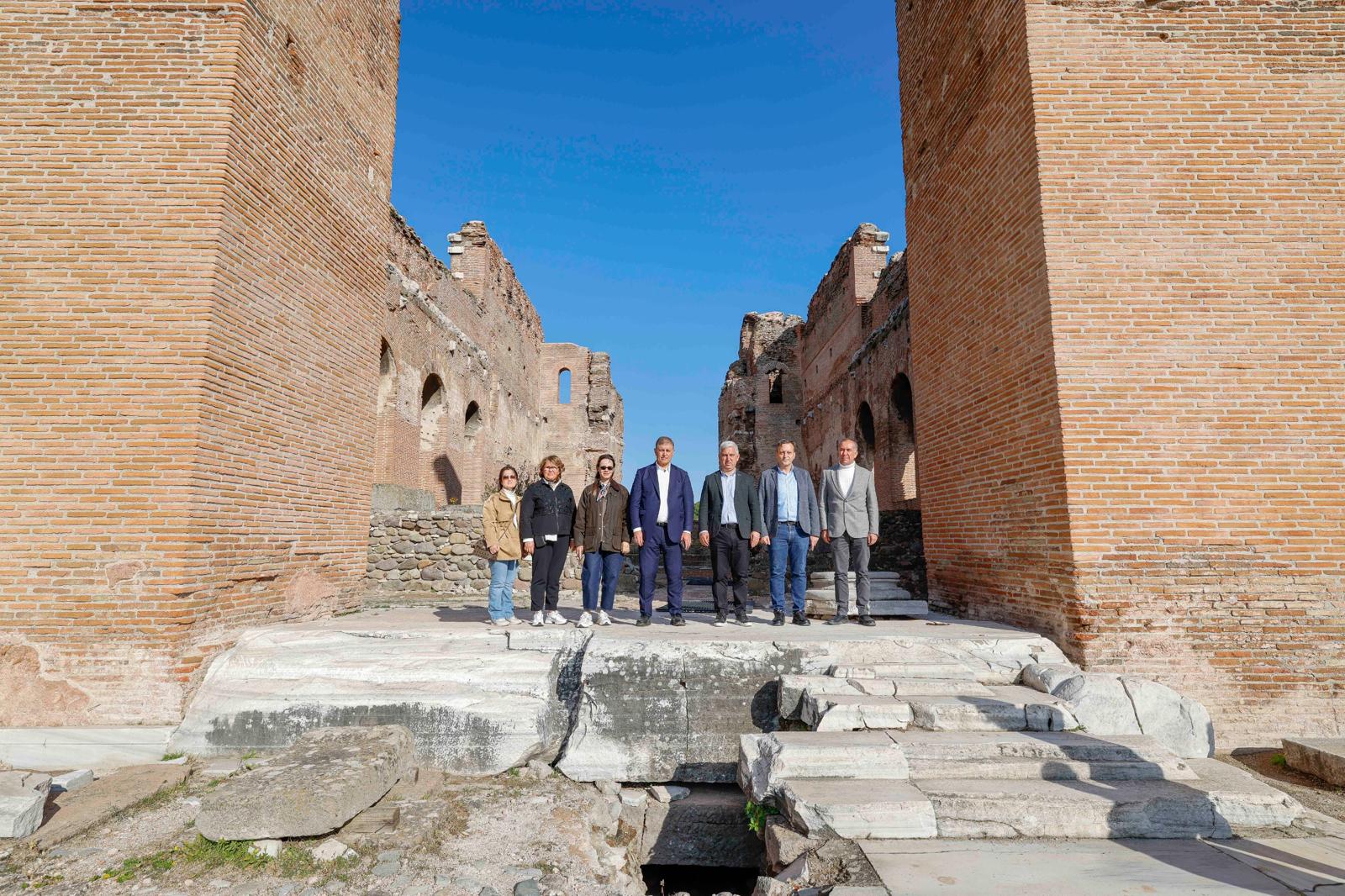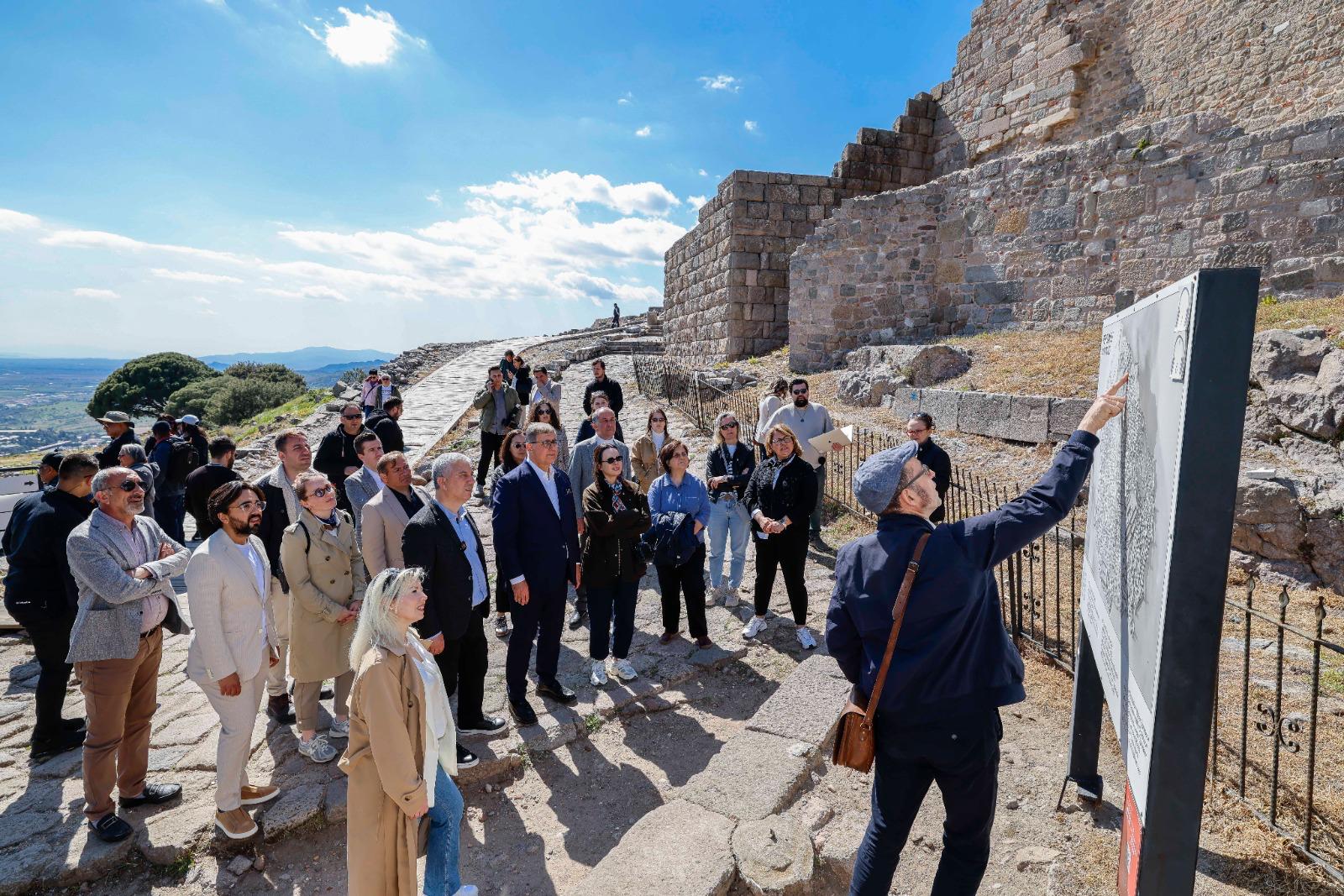 Başkan Tugay ve beraberindeki heyet Ferizler Mahallesi’nin ardından tarihi Akropol’ü ziyaret etti. Bergama Kazı Başkanı Prof. Dr. Felix Pirson rehberliğinde tamamlanan gezi sonrası Alman Kazı Enstitüsü’ne geçildi. Başkan Tugay, Kızıl Avlu’ya da gitti, Geleceğe Miras Kazısı hakkında Kazı Koordinatörü Prof. Dr. Yusuf Sezgin’den bilgi aldı. Sezgin, Başkan Tugay’a İzmir Büyükşehir Belediyesi’nin kazı çalışmalarına verdiği destekler için teşekkür etti.