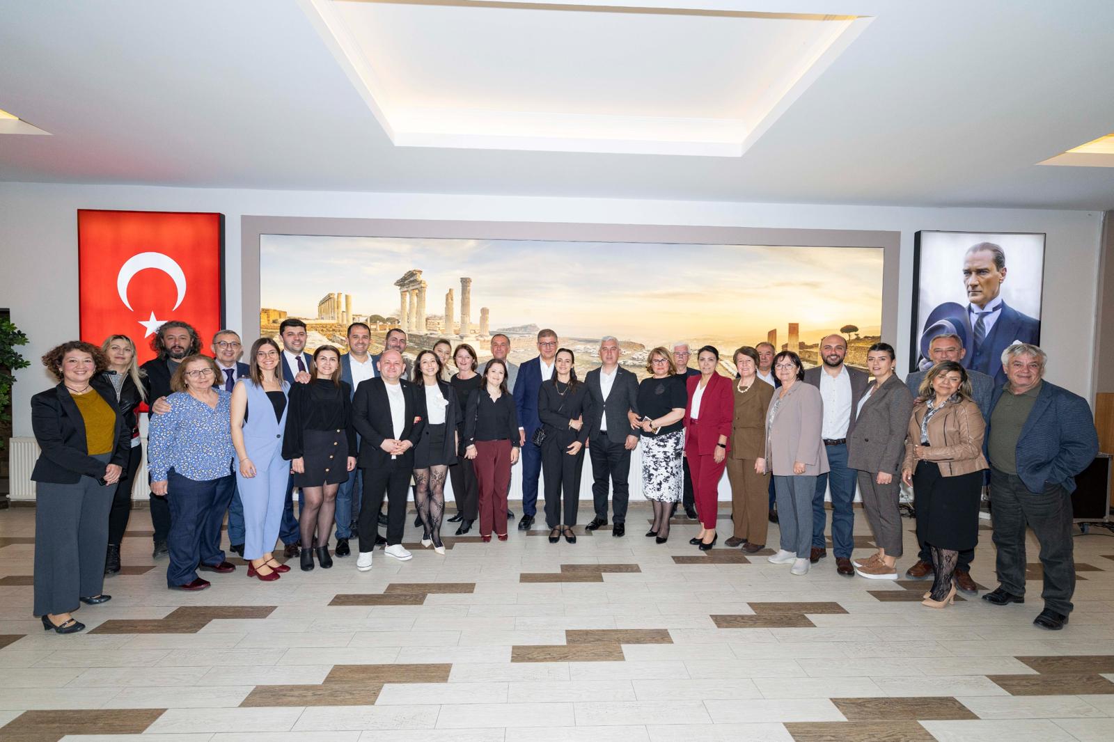 Başkan Tugay daha sonra Cumhuriyet Halk Partisi (CHP) İlçe Başkanı İsmail Durmaz ve eşi, ilçe yöneticileri, belediye meclis üyeleri ve eşlerinin katıldığı akşam yemeğine katıldı. Başkan Tugay, burada yaptığı konuşmada Bergama’nın insanıyla, kültürel yapısıyla, tarihiyle önemli bir yer olduğunu belirterek “Bergama’ya gerçekten katkıda bulunmak için çaba gösterdiğinizi görüyorum. Elimden geldiğince yanınızda olmaya çalışıyorum. Zor bir dönemdeyiz. Hepimizin üzerine özel görevler düşüyor. Böyle zamanlar insani değerlerin daha öne çıktığı, hakkın, hukukun, adaletin tesisi için hepimizin sorumluluk aldığı bir dönem olmak zorunda. Bu dönemde birlik, beraberliğe daha çok önem veriyoruz. Buna mecburuz. Çünkü biz Türkiye Cumhuriyeti idealinin bir parçasıyız. Bu bize en zor ve sıkıntılı günde Cumhuriyet’in değerlerine sahip çıkma sorumluluğu getiriyor. Zor günlerden mücadele ederek çıkacağız” ifadelerini kullandı.