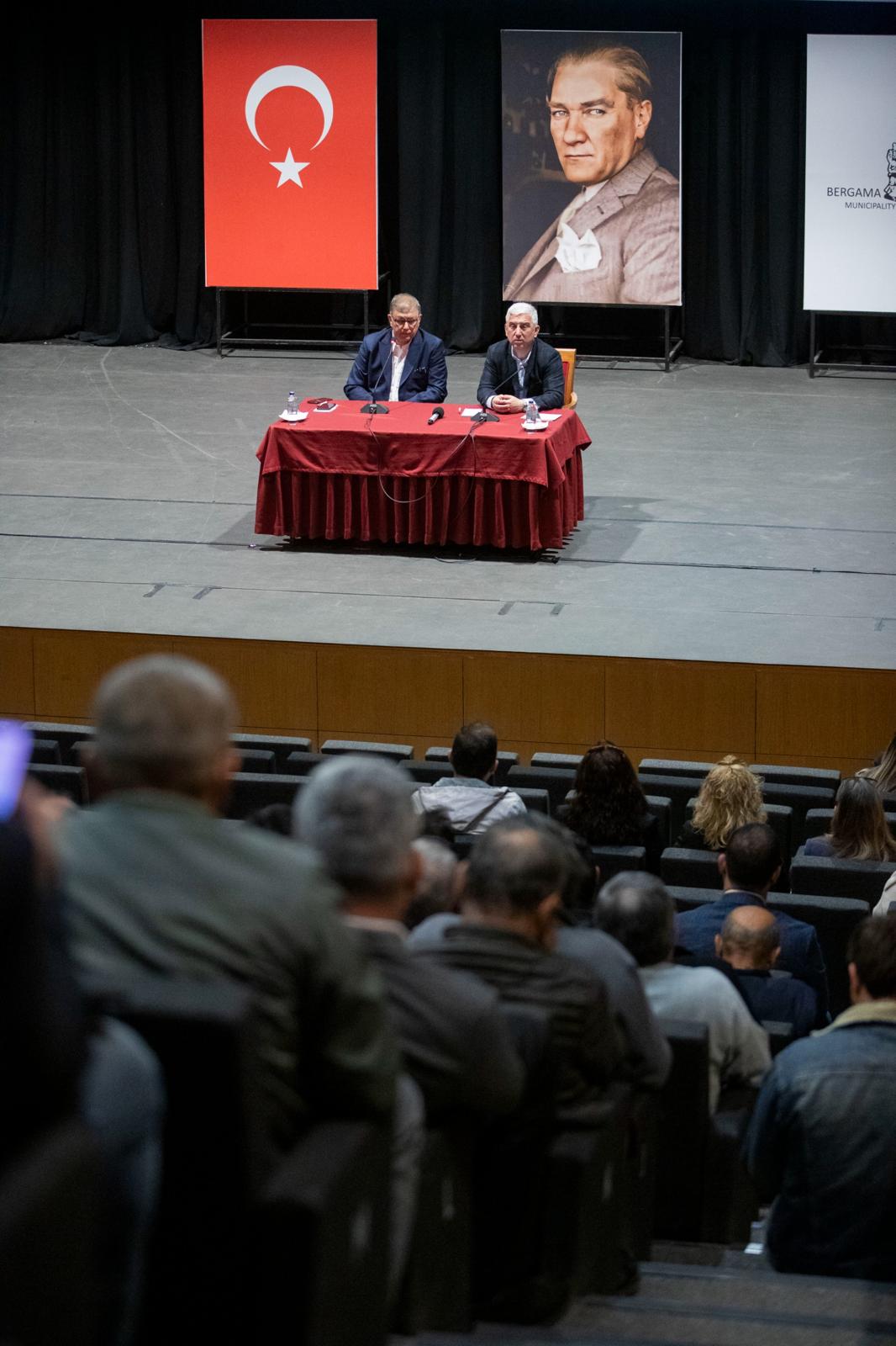 Bergama Belediye Başkanı Prof. Dr. Tanju Çelik ise “İzmir Büyükşehir Belediye Başkanımız Cemil Tugay ile sizleri bir araya getirdiğim için çok mutluyum. Sizin fikirlerinizi almak, Bergama’nın geleceği için öncelikli hedeflerimizi belirlemek için bu toplantı çok faydalı oldu. Görev süremizde birlikte güzel işler yapacağız” ifadelerini kullandı.