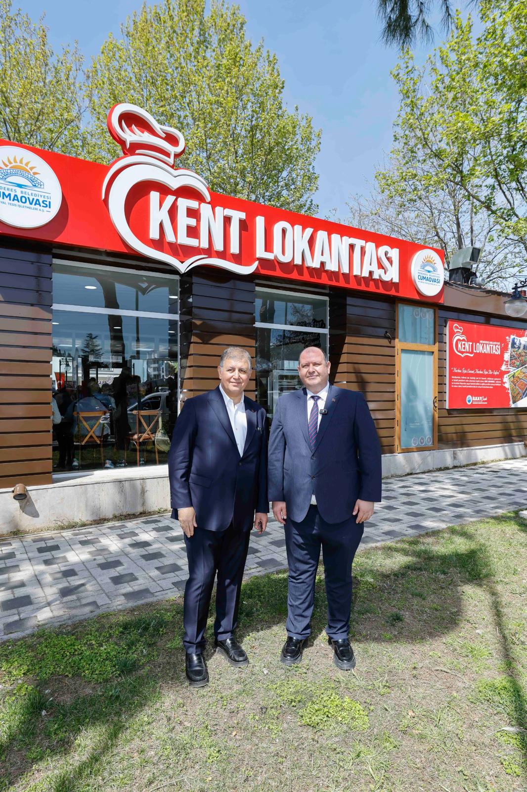 İzmir Büyükşehir Belediye Başkanı Dr. Cemil Tugay, yurttaşlara sağlıklı, kaliteli ve uygun fiyatta yemek hizmeti sunmak için Menderes Belediyesi tarafından Ayyıldız Parkı içerisinde hizmete alınan Kent Lokantası’nın açılışına katıldı. Menderes Belediye Başkanı İlkay Çiçek’in ev sahipliğinde yapılan açılış törenine CHP İzmir Milletvekili Yüksel Taşkın, CHP İzmir İl Başkanı Şenol Aslanoğlu, ilçe belediye başkanları, muhtarlar ve yurttaşlar da katıldı. Belediye şirketi Cumaovası AŞ tarafından işletilen ve ilk etapta günlük bin kişilik yemeğin çıkacağı lokantada, 3 çeşit yemek, ekmek ve su 90 TL’den halka sunuluyor. Kent Lokantası’nın ilk günü menüsünde ise mercimek çorbası, tas kebabı, pirinç pilavı ve cacık yer aldı. Menüde her gün farklı yemekler yer alacak.