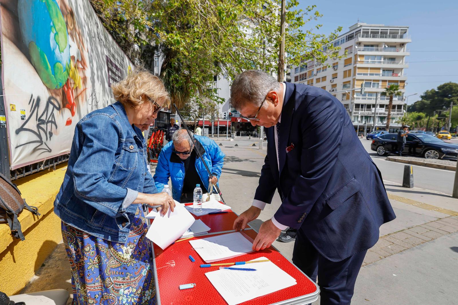 İzmir Atatürk Lisesi’ndeki imza kampanyasına Başkan Tugay da katıldı