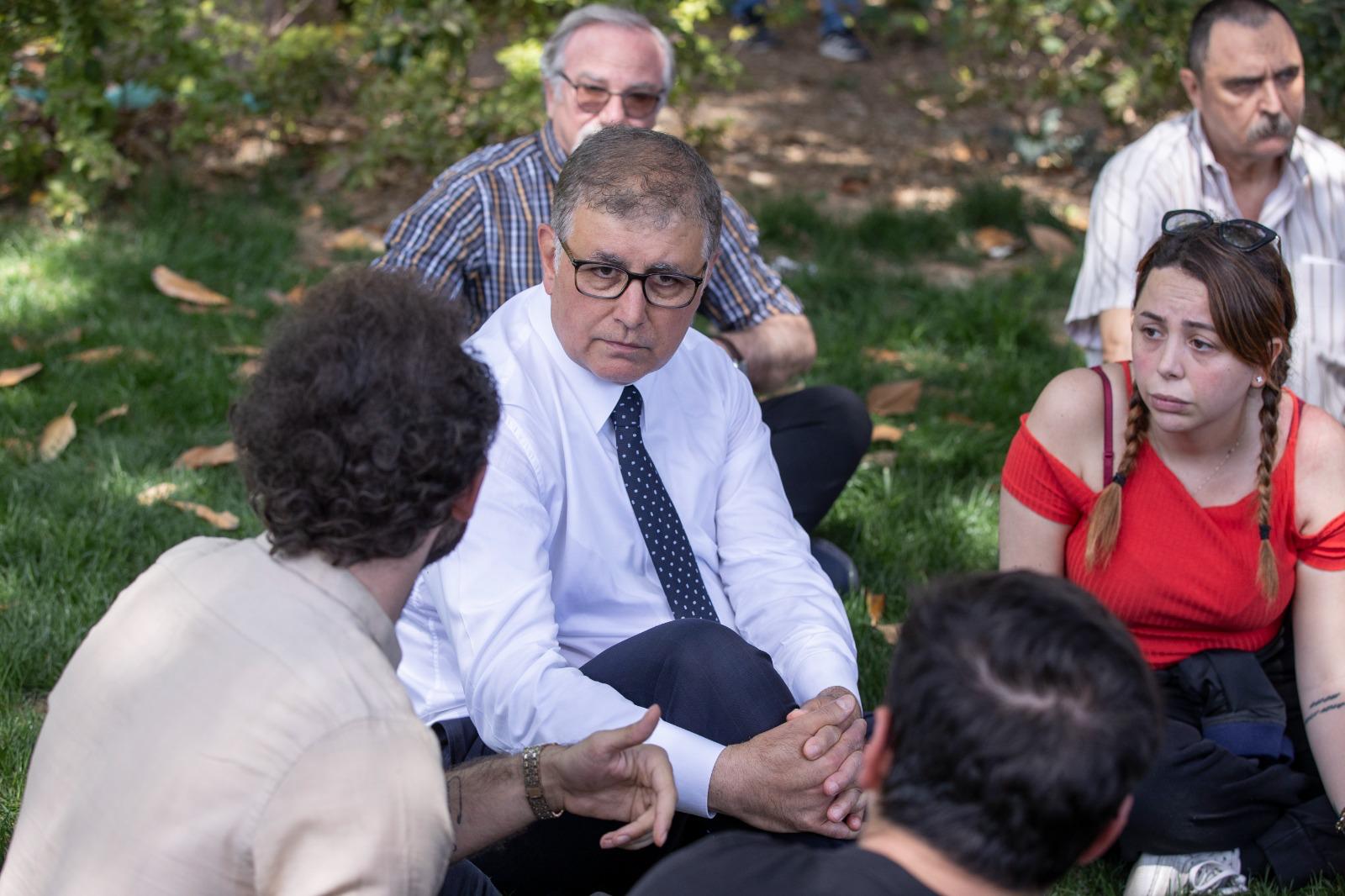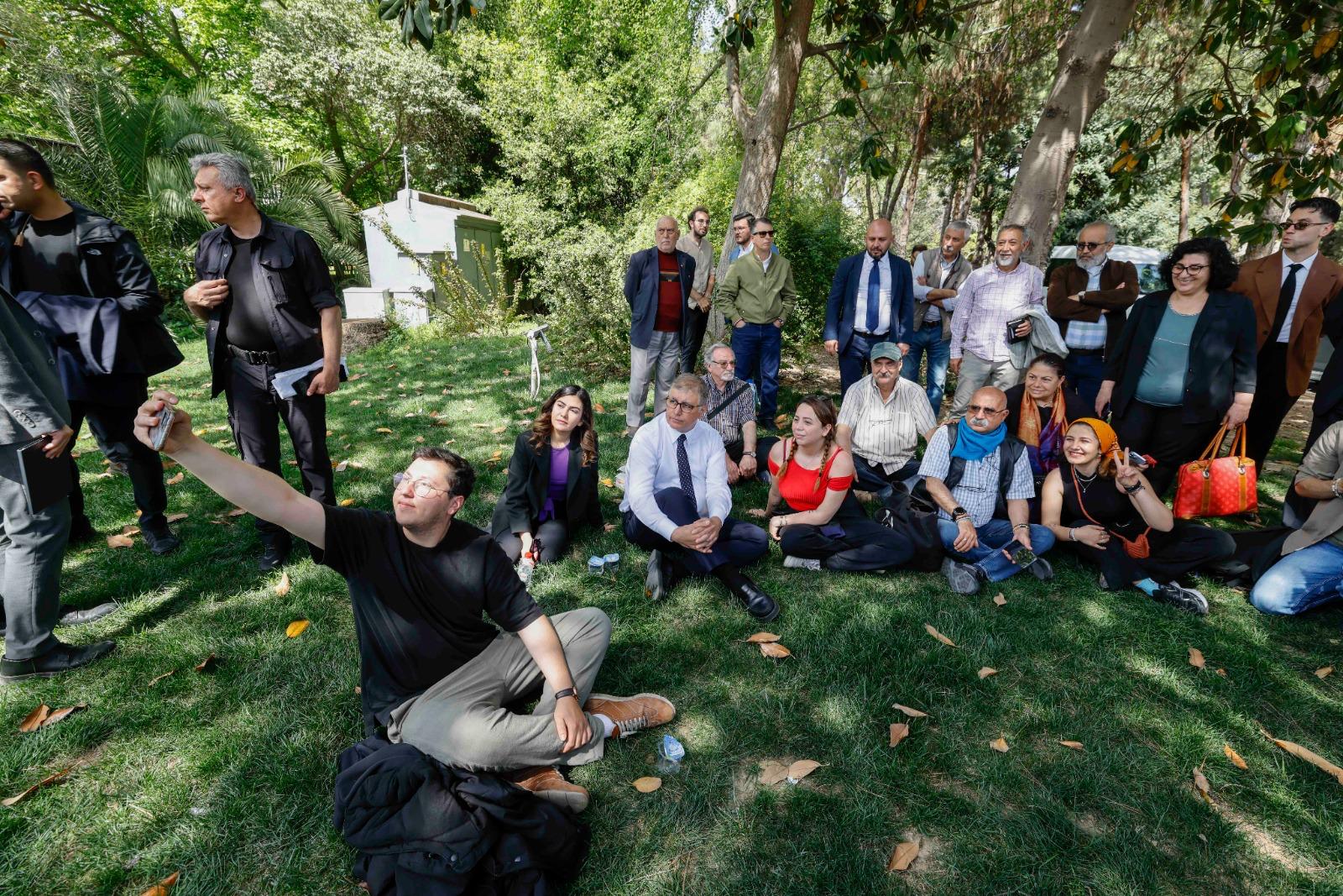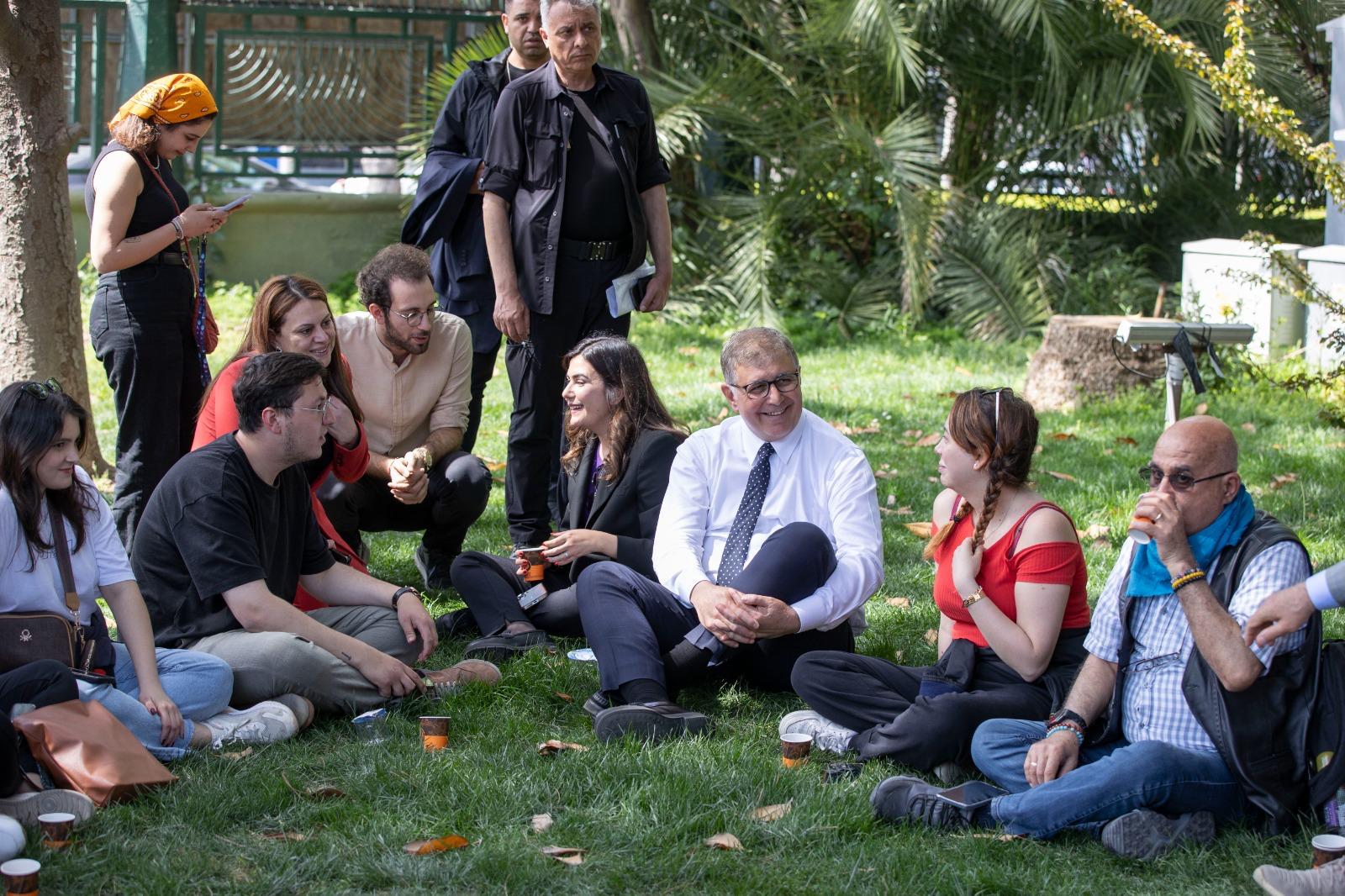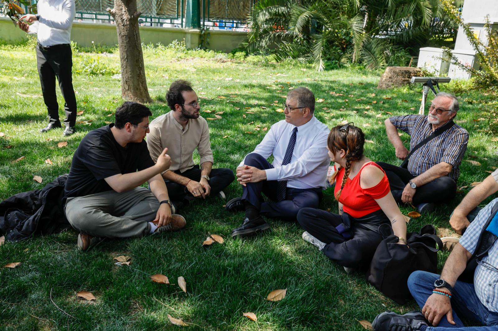 İzmir Büyükşehir Belediye Başkanı Dr. Cemil Tugay, demokratik hak arayışları sırasında tutuklanan arkadaşları için dayanışma çağrısında bulunan gençlerin davetiyle Kültürpark’ın çimleri üzerinde uzun bir sohbet gerçekleştirdi. Başkan Tugay, “Bu ülke güzel yarınlara okuyan, düşünen ve düşüncelerini korkusuzca ifade eden gençlerimiz sayesinde erişecek” dedi.