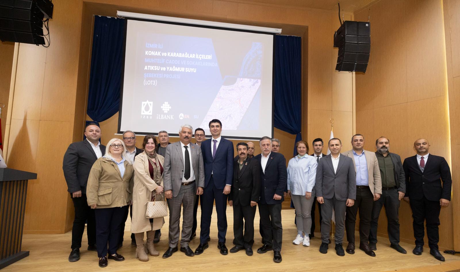 İzmir Büyükşehir Belediyesi İZSU Genel Müdürlüğü, kentin yoğun yapılaşma alanlarından Konak ve Karabağlar'ın altyapısını güçlendirmek ve iklim krizinin yaratacağı su taşkınlarının önüne geçmek için çalışmalarını sürdürüyor. Dünya Bankası’ndan gelecek 110 milyon Euro’luk finansman ile hayata geçirilecek yatırımlardan üçüncüsü olan Konak ve Karabağlar ilçeleri ayrıştırma projesi Karabağlar Belediyesi Mobilya Akademisi'nde düzenlenen toplantı ile bölge sakinleri ve muhtarlara tanıtıldı. Yaklaşık bir saat süren toplantıda yurttaşlara projeden kaynaklı inşaat aşamasının çevresel ve sosyal etkileri aktarılırken gelen sorular yanıtlandı.