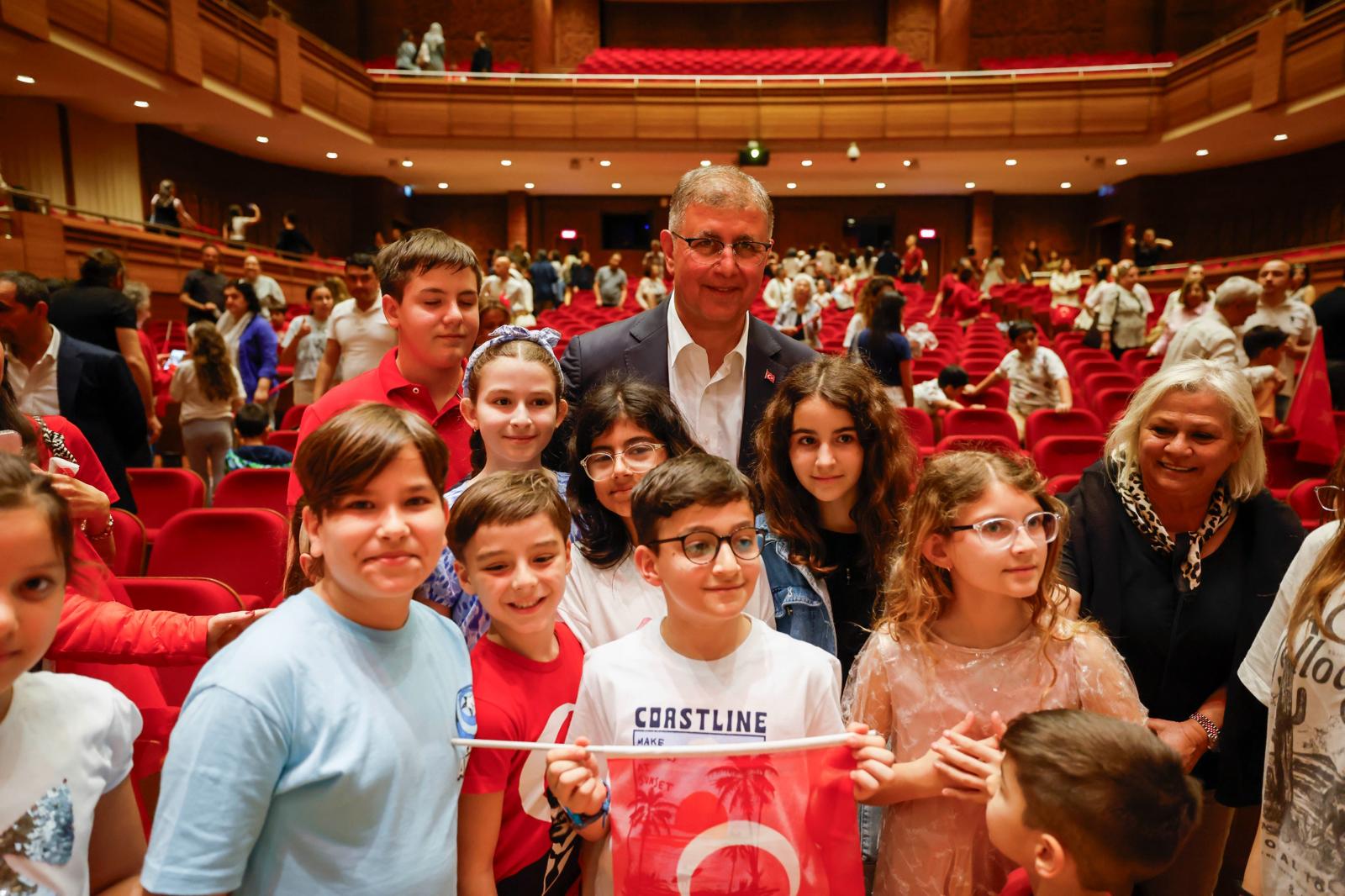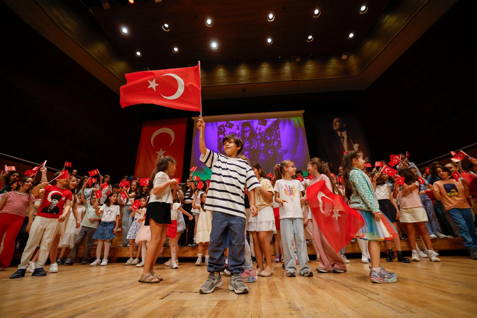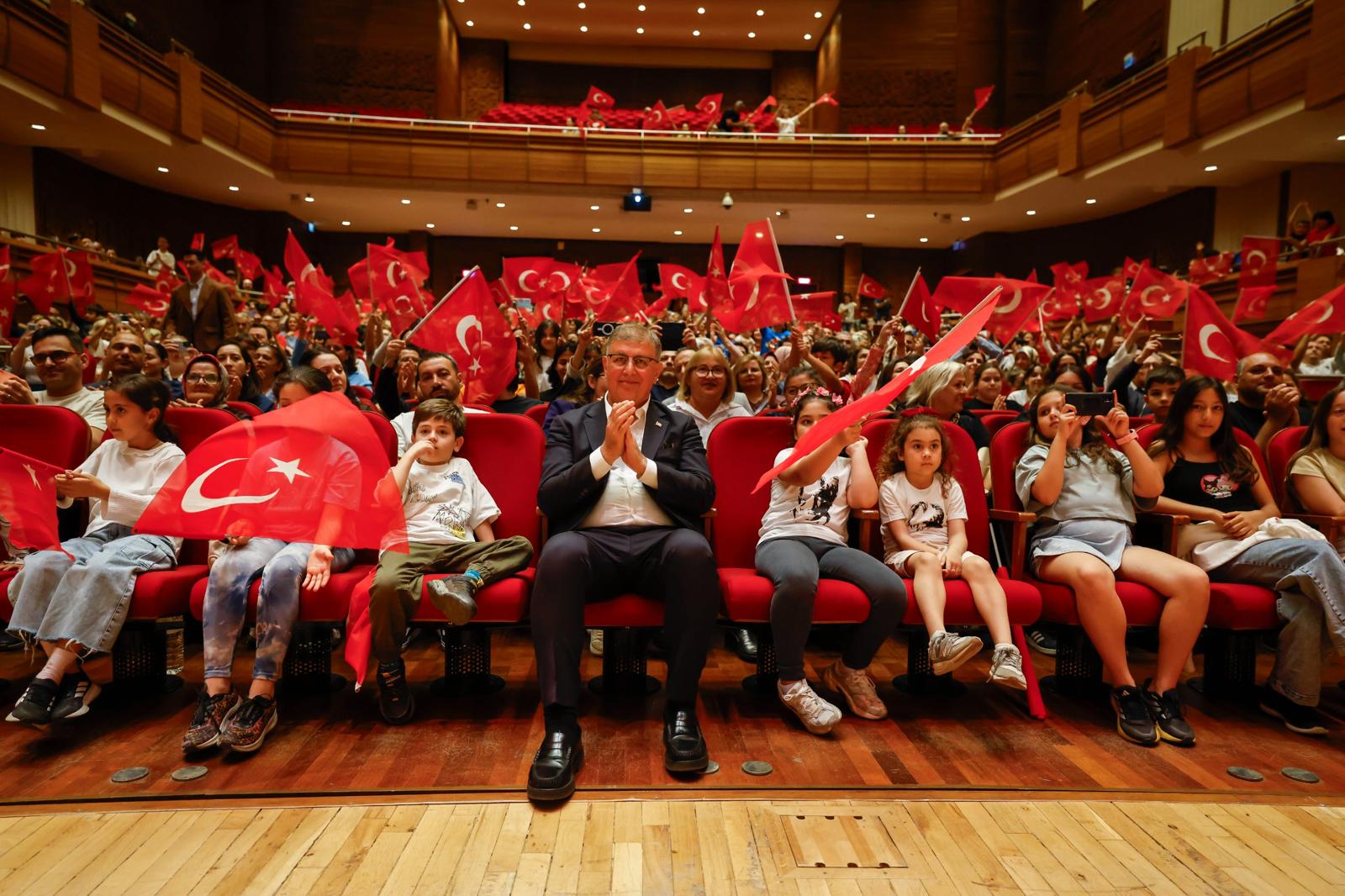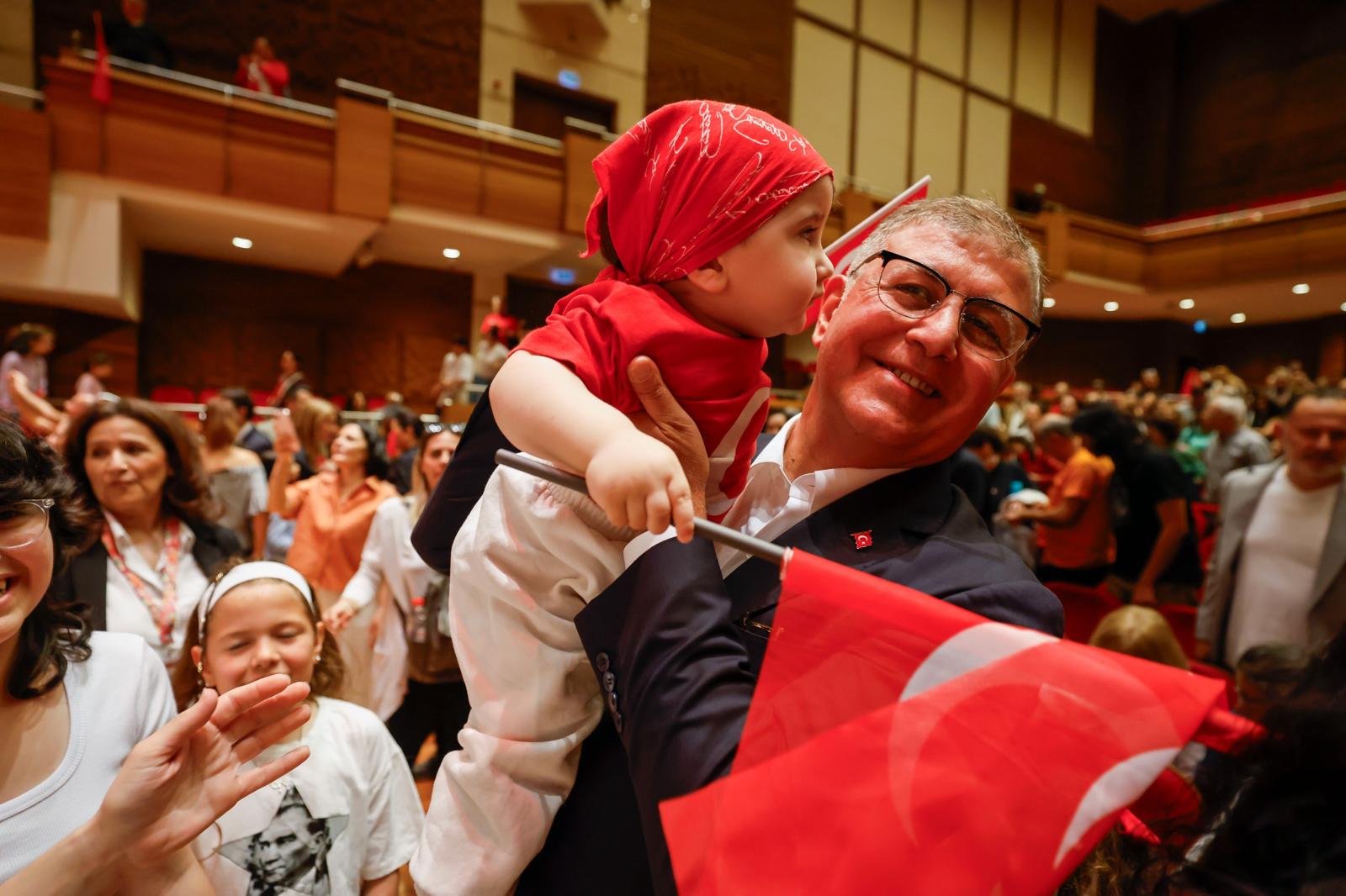 Konser sonunda İzmir Büyükşehir Belediye Başkanı Dr. Cemil Tugay ve tüm salon ellerinde Türk bayraklarıyla 23 Nisan şarkısı söyledi.