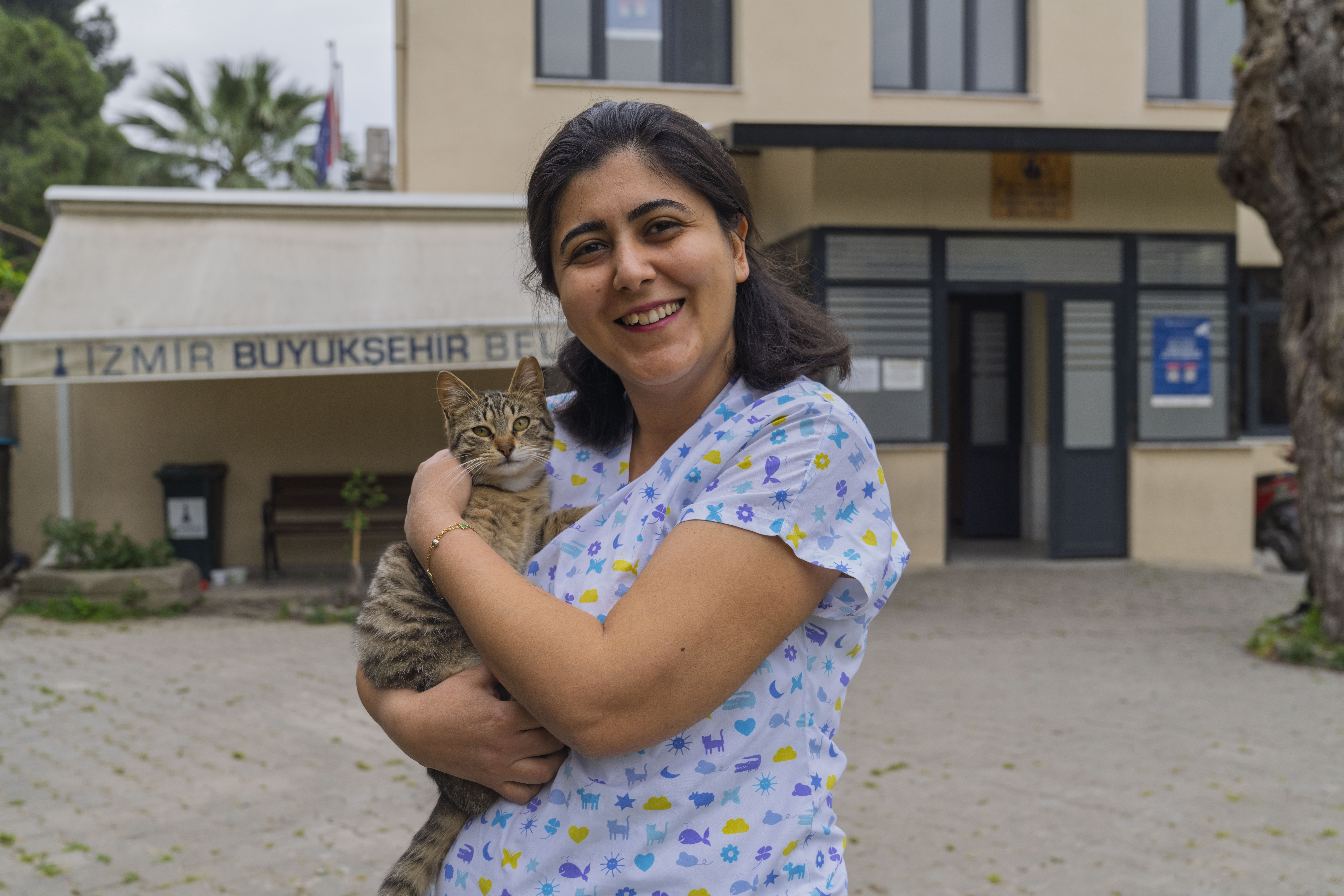 Yaklaşık 3 yıldır İzmir Büyükşehir Belediyesi’nde veteriner hekim olarak görev yapan Ece Ertem de sokak hayvanlarını çok sevdiğini ifade etti. Hayalindeki mesleği yaptığını aktaran Ece Ertem, “Buraya geldikten sonra şunu gördüm ki tüm hekimler, çalışan bütün arkadaşlarımız çok fazla çaba gösteriyor. Hepsi hayvanları çok seviyor. Hem duygusal hem de fiziksel açıdan zor bir mesleğimiz var. Zaman zaman çok üzüldüğümüz durumlar oluyor. Bir canlıyı kaybettiğimiz zaman oturup ağlıyorum. Onlara çok üzülüyorum. Uzun süre tedavi ettiğimiz ancak tedaviye yanıt vermeyenler olduğunda, bu durum bizi çok yaralıyor. Ben de tedaviye getirdiğimiz yavru bir kediyi sahiplendim. Ölmek üzereydi. Eve götürüp onun sıcak bir yuvada sağlığına kavuşmasını istedim. İyileştikten sonra da bırakamadım. Barınaklarımızda sahiplenmeyi bekleyen çok fazla hayvan var. Lütfen gelin. Eminim ki biri kalbinizi çalacak.”