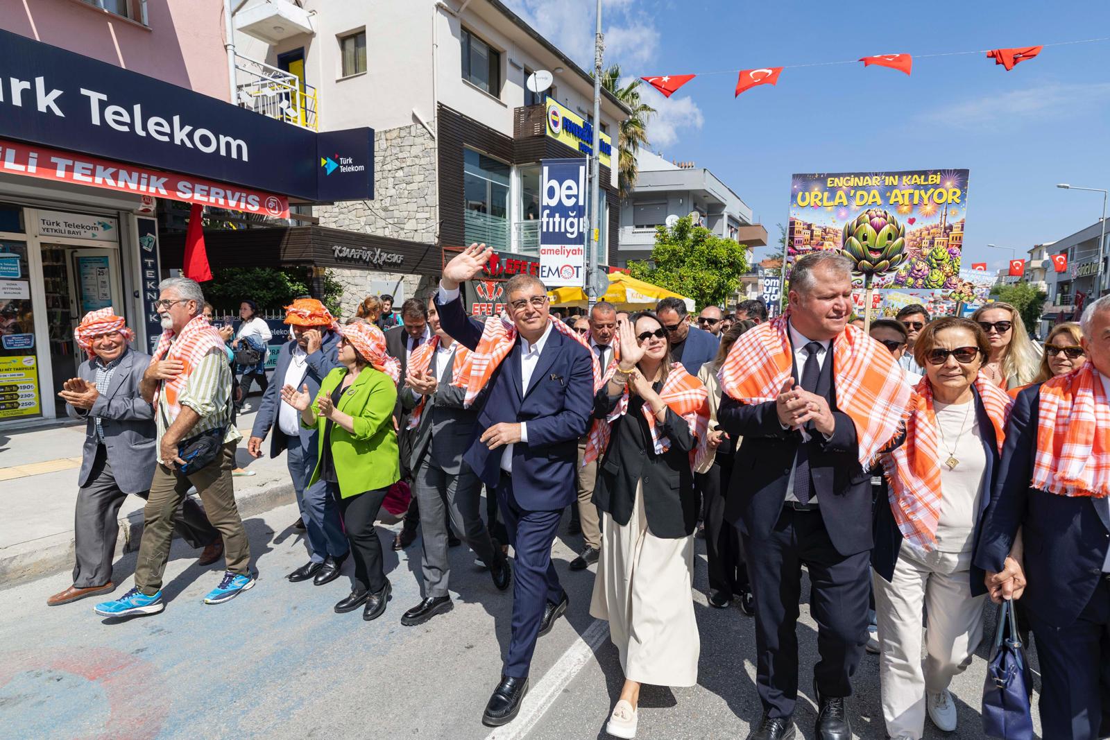 Bir yandan tarım üreticisini desteklerken bir yandan da yerel lezzetleri dünyaya tanıtarak İzmir turizmine katkı sağlamayı hedefleyen Uluslararası Urla Enginar Festivali, “Bir Enginar, Bin Lezzet” sloganı ile 11’inci kez dünyaya kapılarını açtı. İzmir Büyükşehir Belediyesi’nin desteklediği festival, kortej yürüyüşü ile başladı. Kortejte eşi Öznur Tugay ile birlikte yer alan İzmir Büyükşehir Belediye Başkanı Dr. Cemil Tugay’a Urla Belediye Başkanı Selçuk Balkan ile eşi Pınar Balkan, CHP Parti Sözcüsü ve İzmir Milletvekili Avukat Deniz Yücel, Karaburun Belediye Başkanı İlkay Girgin Erdoğan, İzmir Büyükşehir Belediye Meclisi CHP Grup Başkanvekili Altan İnanç, Urla Kaymakamı Mustafa Gözlet, Urla Ziraat Odası Başkanı Muharrem Uslucan, üreticiler, oda, dernek ve sivil toplum kuruluşlarının başkanları ile temsilcileri, meclis üyeleri, muhtarlar, siyasi parti temsilcileri ve yurttaşlar eşlik etti. Üreticiler, enginar dolu traktörleriyle korteje renk kattı.