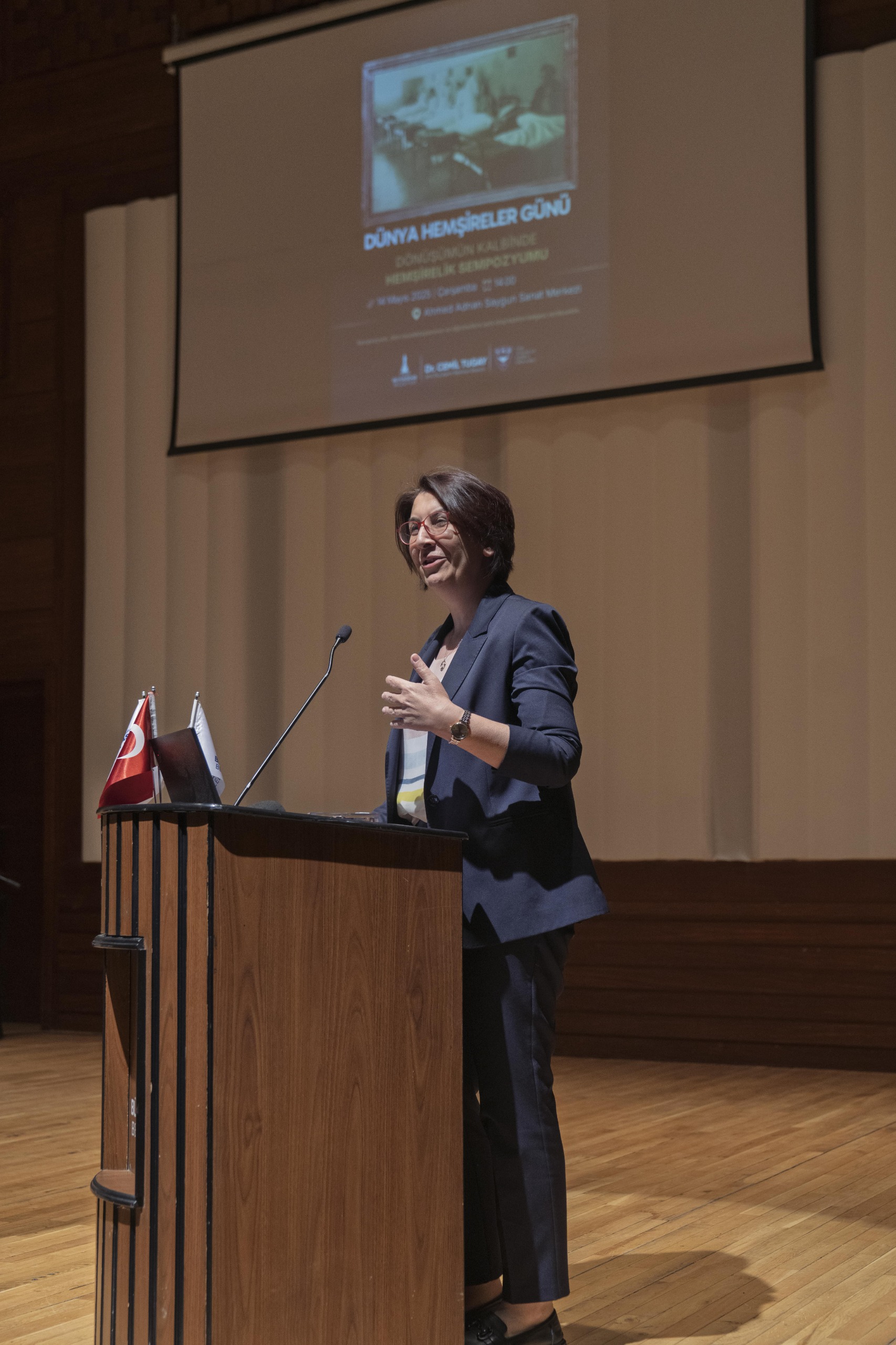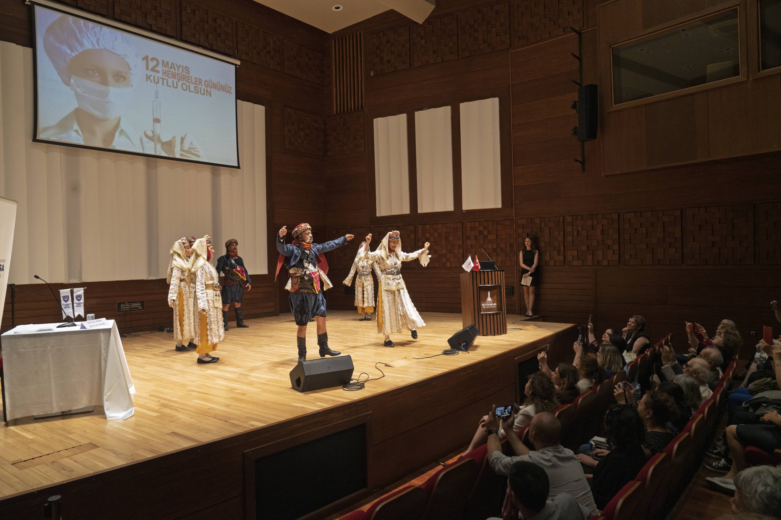 İZTÜ Sağlık Bilimleri Fakültesi Hemşirelik Bölümü’nden Prof. Dr. Fisun Şenuzun Aykar moderatörlüğünde düzenlenen sempozyumda, Türk Hemşireler Derneği İzmir Şubesi Başkanı Dr. Öğretim Üyesi Ebru Melek Benligül, “Tükenmişlikten Umuda: Hemşirelikte Yeni Bir Yol Haritası”, Ege Üniversitesi Hemşirelik Fakültesi’nden Prof. Dr. Şafak Dağhan ise “Yarınları İnşa Etmek: Hemşirenin Dönüştürücü Gücü” başlıklarında konuşma yaptı. Etkinlikte, emekli hemşireler de sahneye çıkarak duygularını paylaştı. Sempozyum, Eşrefpaşa Hastanesi hekimleri, hemşireleri ve sağlık çalışanlarının halk oyunu gösterisi ile sona erdi.