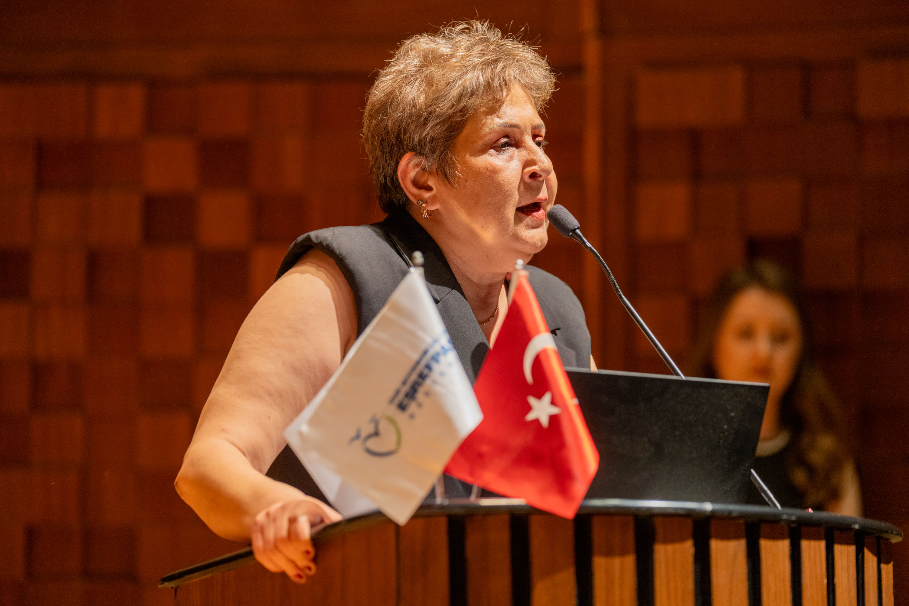 Türk Hemşireler Derneği İzmir Şubesi Başkanı Dr. Öğretim Üyesi Ebru Melek Benligül, “Sağlığın korunması ve geliştirilmesi, hastalanan bireyin sağlığına kavuşturulması için tüm ortamlarda kesintisiz hizmet vermek hedefiyle mesleğe başlıyoruz. Halkımızın hak ettiği nitelikli hemşirelik bakımını sunmak istiyoruz. Ancak ne yazık ki her geçen gün halkımızın sağlıklı olmaktan bizler de arzu ettiğimiz, inandığımız kaliteli sağlık hizmetinden uzaklaşıyoruz. Sağlık hizmetini ticaretin konusu olarak gören, sağlık değil hastalık üreten bir sağlık sisteminde sağlıklı kalamıyor, halkımızı sağlıklı kılamıyoruz. Bizleri yok sayan; eğitimimizi, uzmanlığımızı, meslek kimliğimizi, emeğimizi görmeyen, yasa ve yönetmeliğimizi hiçe sayan bir sistemde bizler sağlıklı kalamıyor, halkımızı sağlıklı kılamıyoruz” ifadelerini kullandı.