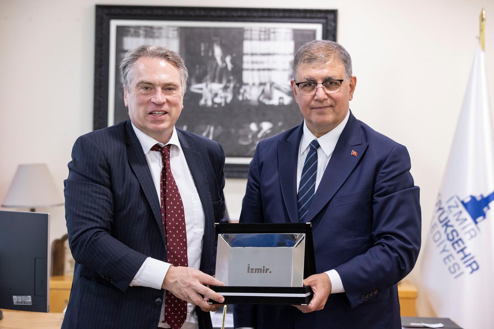 İzmir Büyükşehir Belediye Başkanı Dr. Cemil Tugay, Avrupa Birliği (AB) Türkiye Delegasyonu Başkanı Büyükelçi Thomas Hans Ossowski ve beraberindeki heyeti makamında ağırladı. Görüşmede Avrupa Birliği Türkiye Delegasyonu Siyasi Bölüm Başkanı Stefano Fantaroni, AB Türkiye Delegasyonu İklim, Enerji ve Ulaştırma Ekip Koordinatörü Göktuğ Kara ve İzmir Planlama Ajansı (İZPA) Başkanı Prof. Dr. Koray Velibeyoğlu da yer aldı.