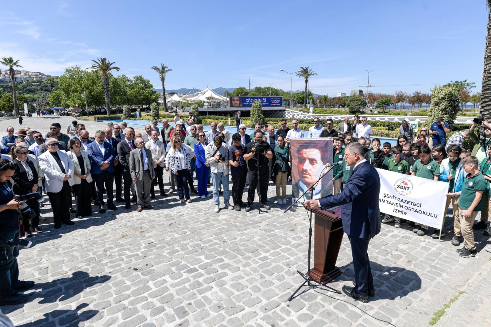 Törende konuşan Büyükşehir Belediye Başkanı Dr. Tugay, Hasan Tahsin’in gazetecilerin onuru olduğunu belirterek, “İzmir’i İzmir yapan çok fazla değer var. Bunların en önemlilerinden birisi de kurtuluşun şehri olması ardından cumhuriyetin kuruluşunun temellerinin atıldığı şehir olmasıdır. Ama o kurtuluş hikayesinin başlamasına sebep olan İzmir işgalinin de en kahramanca direniş noktası olmasıdır. Bu direnişin sembol ismi Hasan Tahsin gazetecidir ve gazetecilerin onurudur. Ama aynı zamanda İzmir’in, Türkiye’nin gururudur. Hasan Tahsin’i bütün Türkiye bilir. Herkes bu kahramanlığın hikayesini duymuştur. Sadece Hasan Tahsin’in kahramanlığı gazetecilerin tek kahramanlığı diyebilir miyiz? Hayır. Bütün samimiyetimle söylüyorum; bugün yaşanan gerçekleri katıksız bir şekilde halka duyurmaya, ulaştırmaya çalışan, onların doğru bilgi almasını sağlamaya çalışan, hiçbir şeyden çekinmeyen, zaman zaman bunun sıkıntılarını yaşayan, eline kalemi aldığında içindeki korkuyu atarak ‘ben doğruları yazacağım’ diyen bütün gazeteciler bence kahramandır” dedi.