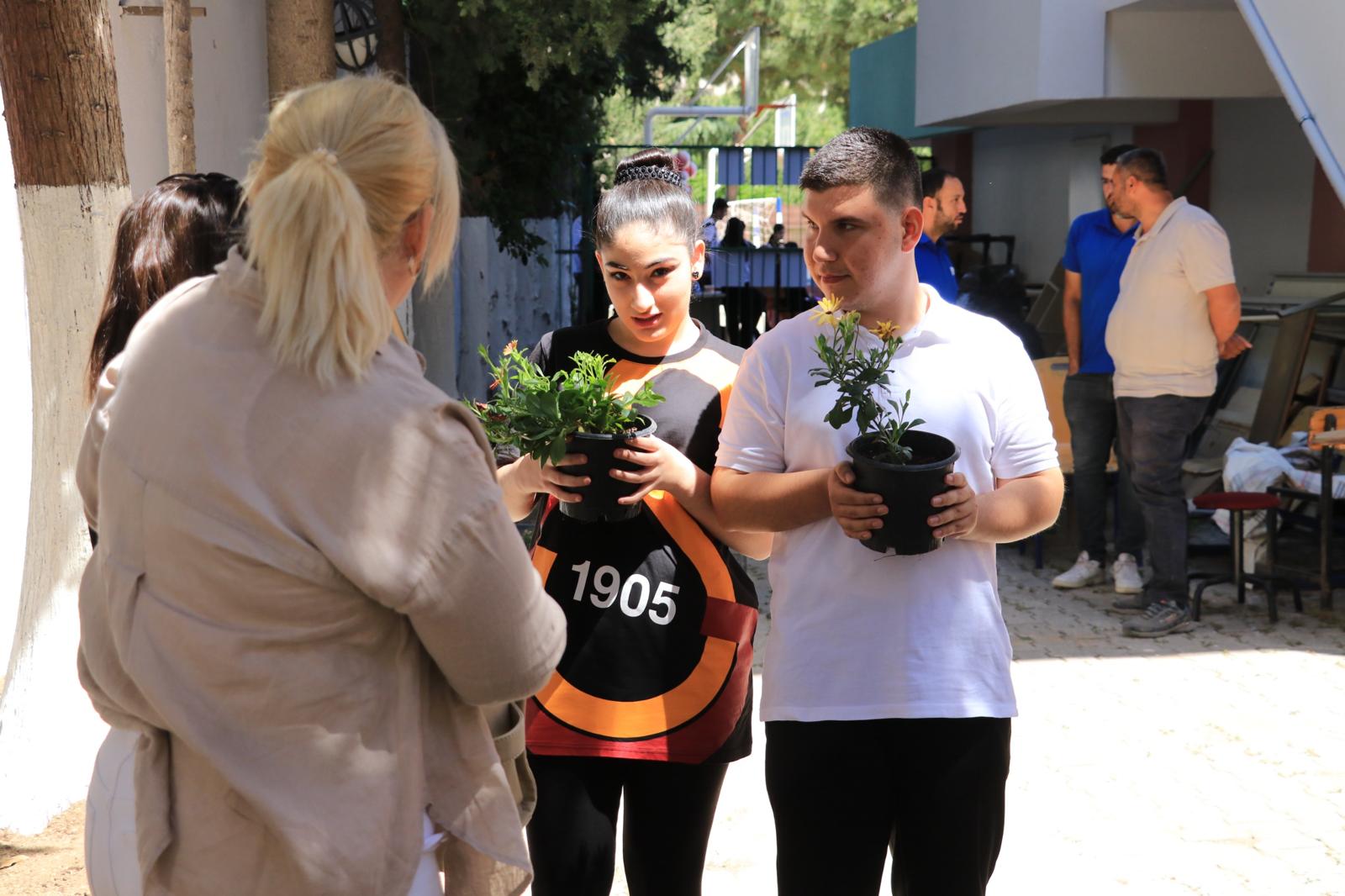 Engelliler Haftası'nda Rasim Önel Ticaret Mesleki ve Teknik Anadolu Lisesi'nin gösterisine katılan İzmir Büyükşehir Belediyesi ekipleri, öğrencilerin isteği üzerine okula piknik masası kazandırarak çiçek dikti.