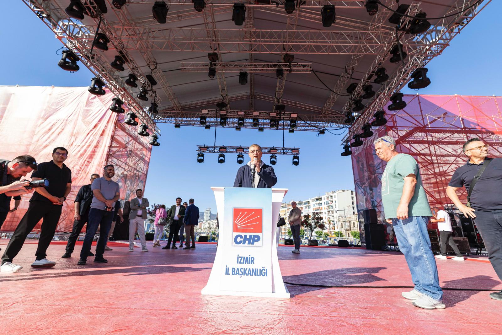 İzmir Büyükşehir Belediye Başkanı Dr. Cemil Tugay, 19 Mayıs Atatürk'ü Anma, Gençlik ve Spor Bayramı'nda Cumhuriyet Halk Partisi (CHP) Genel Başkanı Özgür Özel'in katılımıyla Alsancak Gündoğdu Meydanı'nda düzenlenecek 19 Mayıs İzmir Mitingi'nin hazırlıklarını inceledi. Yarın yapacağı konuşma için ses provasına katılan Başkan Tugay, alanda düzenleme yapan ekip ve çalışanlarla bir araya gelerek çalışmalar hakkında bilgi aldı. İncelemenin ardından Başkan Tugay, tarihe geçecek mitinge Türkiye'nin her yerinden yurttaşları davet ederek, “Çok heyecanlıyız. 19 Mayıs Atatürk'ü Anma, Gençlik ve Spor Bayramı'nı kutlayacak, yüreği cumhuriyet, demokrasi, insan hakları, adalet için atan milyonlarca yurttaşımızla bu meydanda bir araya geleceğiz. Gençlerimizin bayramı Türkiye'ye umut olacak. Bu bayram ülkemize moral olacak” dedi.