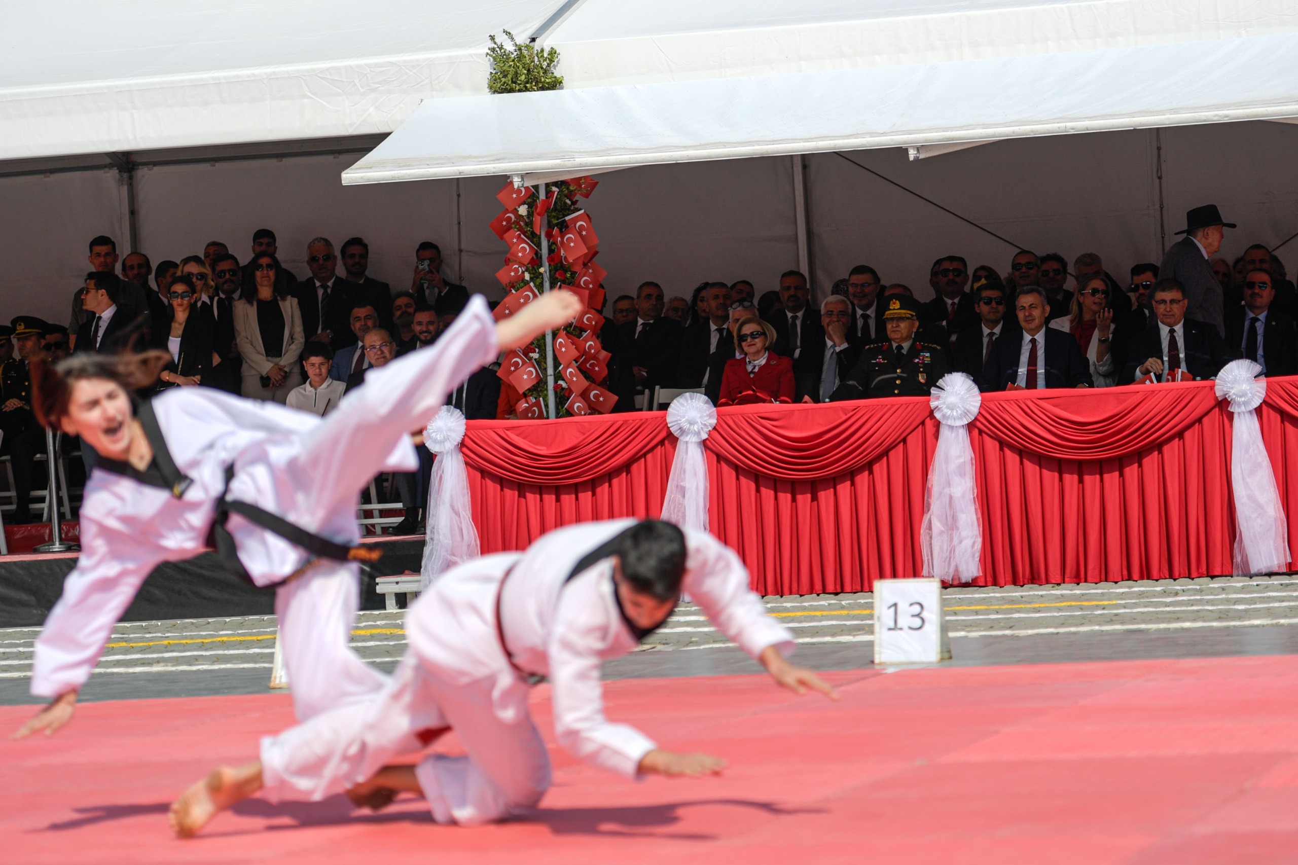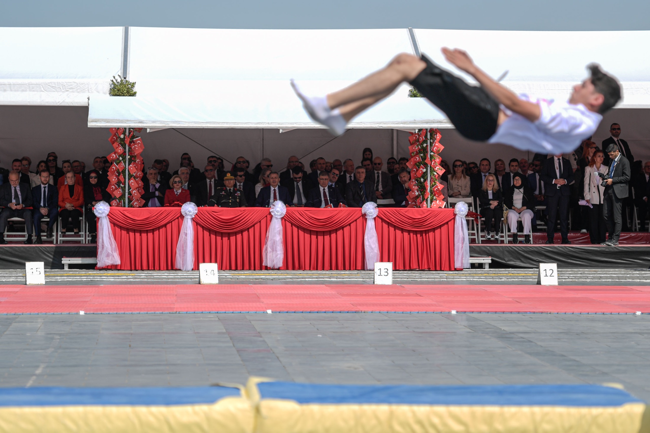 Konuşmaların ardından öğrenciler şiir okudu. Törende İzmir Yüksek Teknoloji Üniversitesi Halk Dansları, Dokuz Eylül Üniversitesi Folklor toplulukları ile İzmir Gençlik ve Spor İl Müdürlüğü tekvando grubu gösterileri büyük ilgi gördü. Güreş, ritmik jimnastik gösterileri ise nefes kesti. Tören Türk bayrakları ile Atatürk fotoğrafının yer aldığı Türk bayrakları eşliğinde sporcuların ve İzmirliler’in meydanda oluşturduğu coşkulu görüntü ile sona erdi.