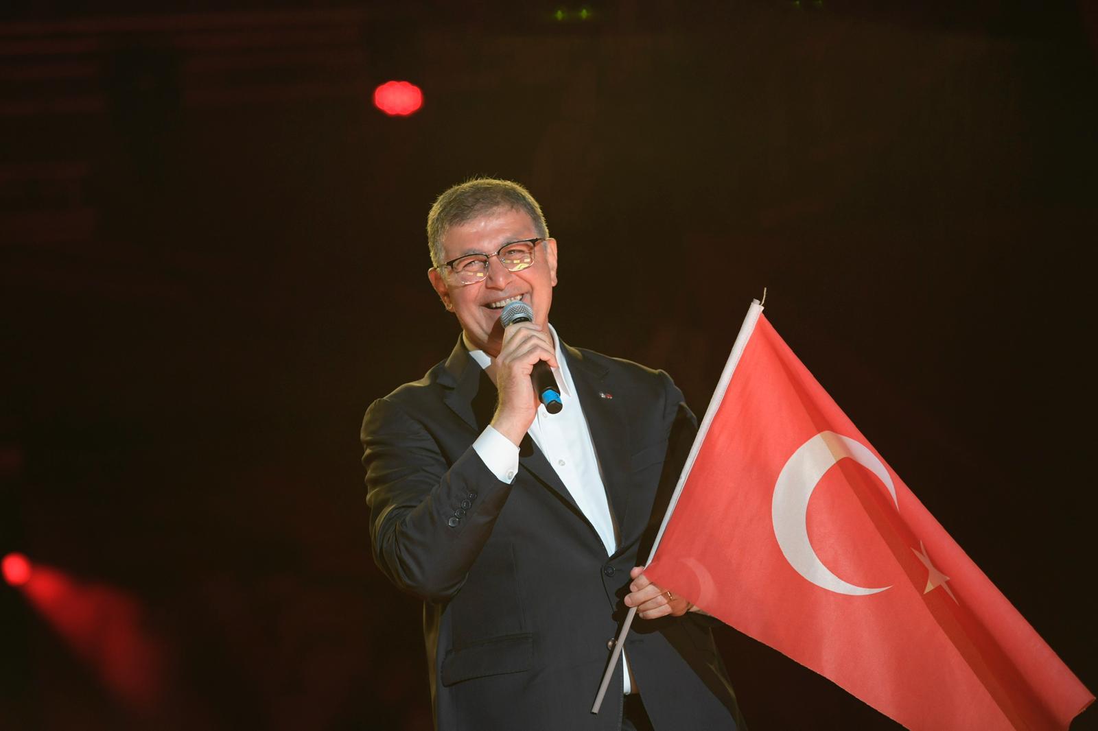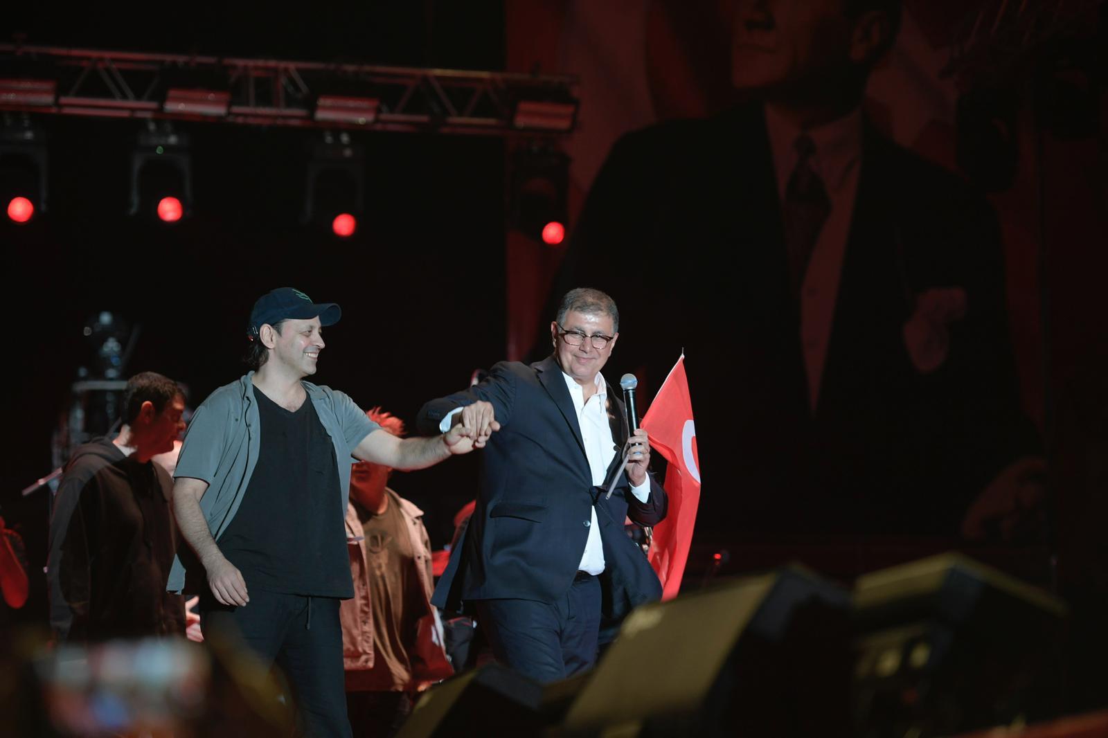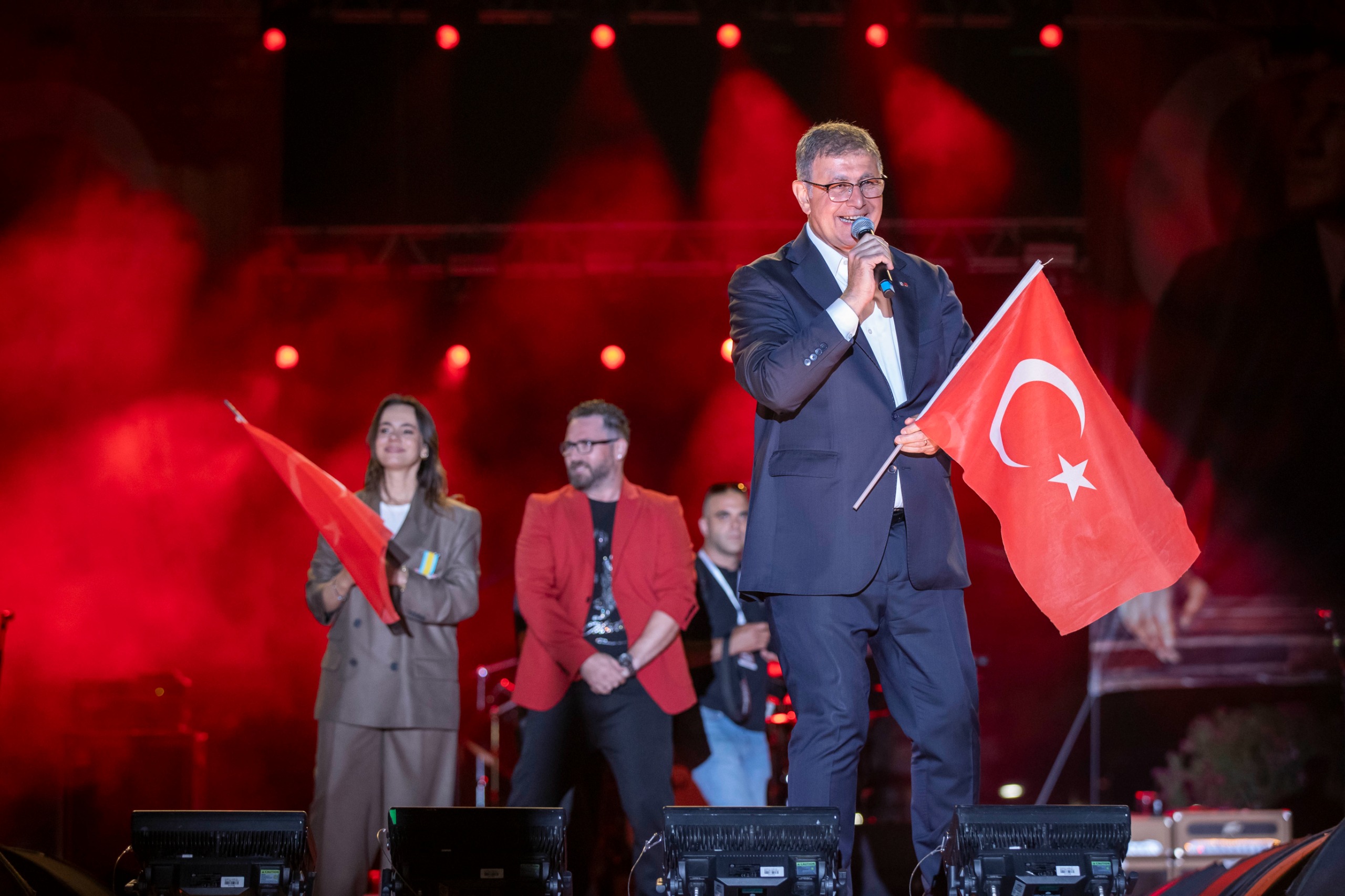 İzmir Büyükşehir Belediye Başkanı Dr. Cemil Tugay, Gündoğdu Meydanı’ndaki 19 Mayıs İzmir Mitingi’nde sahneye çıkan Duman konserine eşi Öznur Tugay ile birlikte katıldı. Başkan Tugay, “Gözbebeğimiz olan tüm gençlerimizin Gençlik ve Spor Bayramı’nı kutluyorum. Emin olduğumuz bir şey var; bu ülkenin gençleri çok daha iyi bir ülkeyi hak ediyor. Söz veriyorum bunun için çalışacağız” dedi.