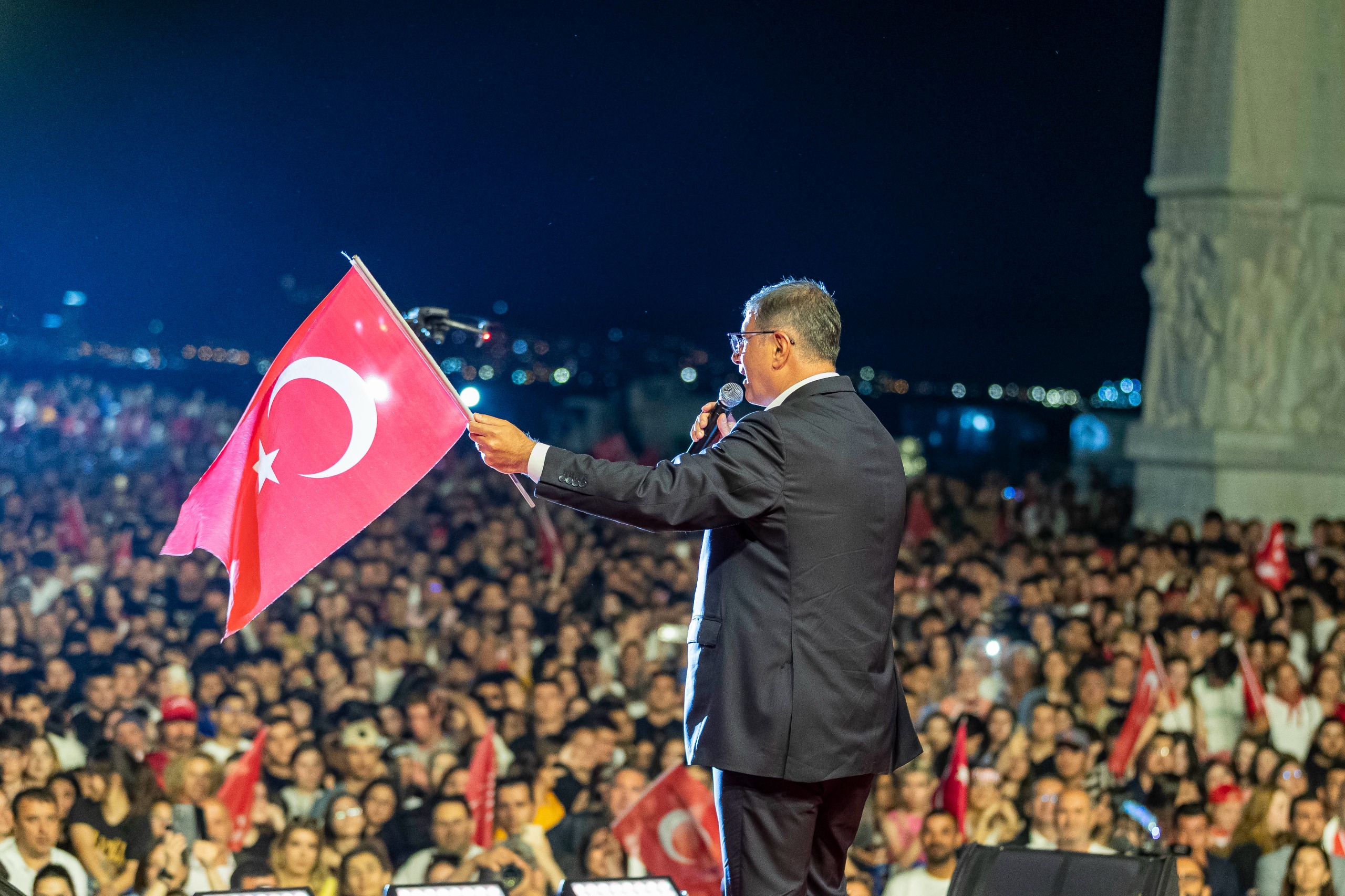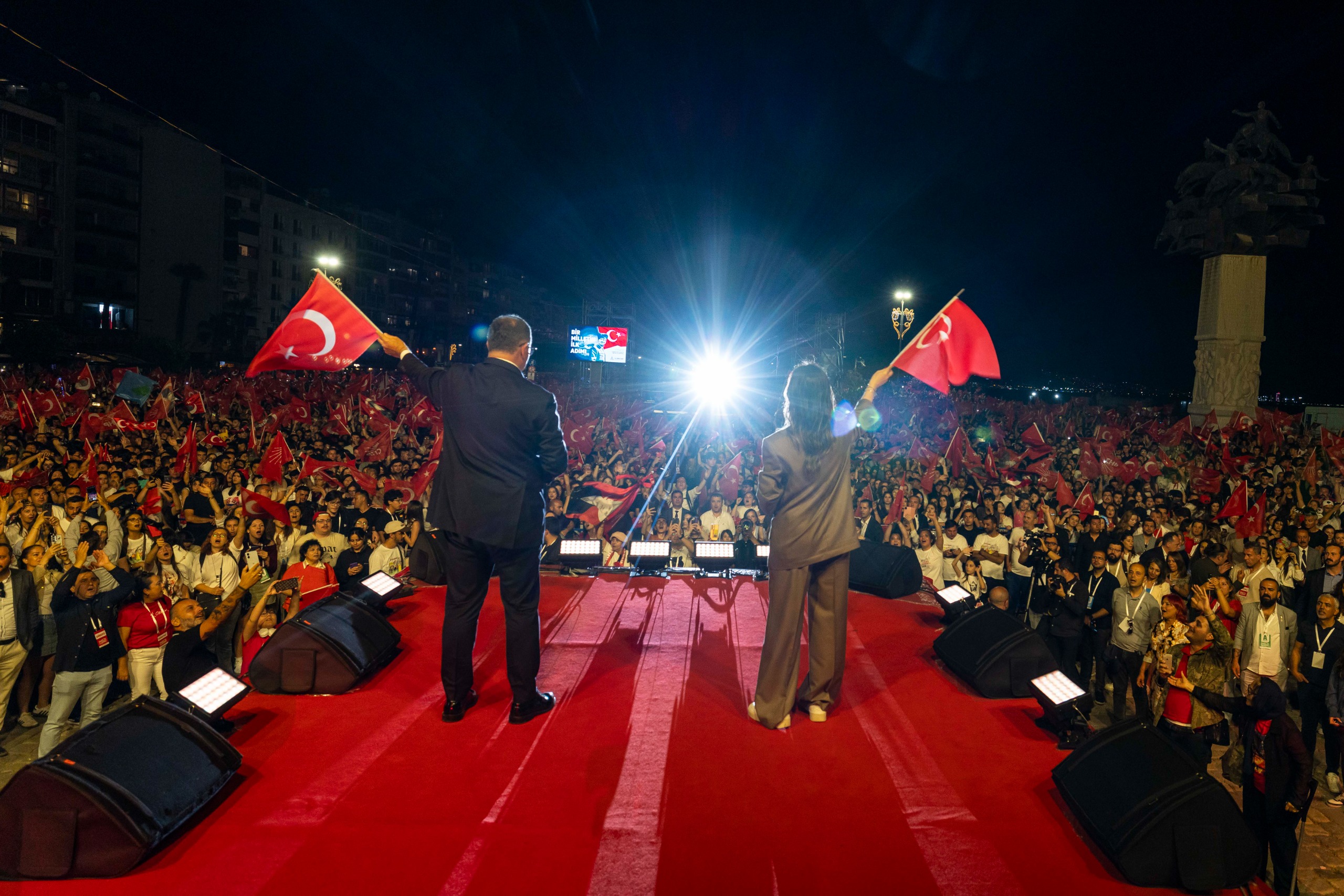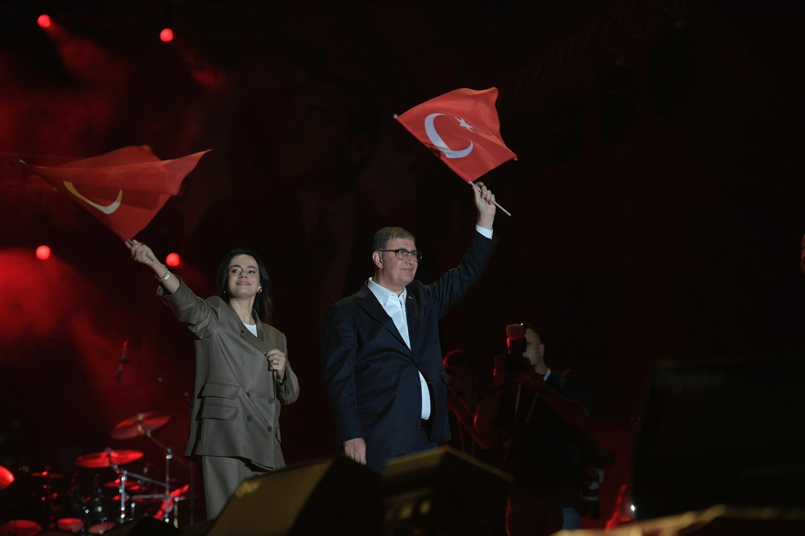 Cumhuriyet Halk Partisi (CHP) tarafından 19 Mayıs Atatürk’ü Anma Gençlik ve Spor Bayramı’nda organize edilen “Millet İradesine Sahip Çıkıyor İzmir Mitingi”, Gündoğdu Meydanı’nda büyük bir coşkuya sahne oldu. CHP Genel Başkanı Özgür Özel ve partinin tüm kadrolarıyla yer aldığı buluşmaya ev sahipliği yapan İzmir Büyükşehir Belediye Başkanı Dr. Cemil Tugay ve eşi Öznur Tugay, Duman konserine de katıldı.