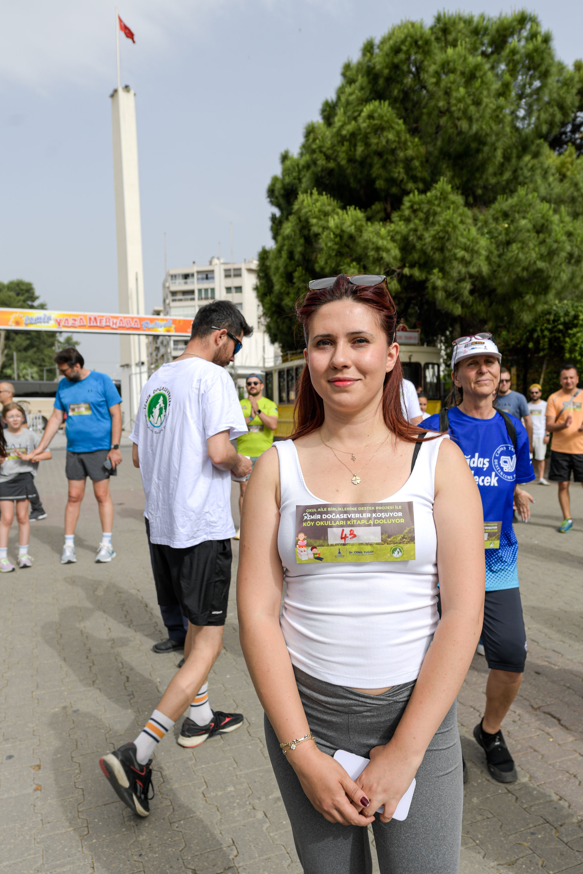 İzmir Büyükşehir Belediyesi Sosyal Hizmetler Dairesi Başkanlığı Çocuk Çalışmaları ve Eğitim Destekleri Şube Müdürlüğü’nde görevli proje yürütücüsü Yağmur İnanır, “İzmir Büyükşehir Belediyesi ve İzmir Doğaseverler Topluluğu iş birliğinde koşu gerçekleştiriyoruz. Koşuya katılanlar köy okullarına kitap desteğinde bulundu. Okul Aile Birliklerine Destek Projemiz kapsamında İzmir’de bulunan köy okullarını ziyaret ediyoruz. Okul aile birliklerinden gelen talepler doğrultusunda ihtiyacı olan okulların kütüphanelerini zenginleştirmek için bu yola çıktık. Bu koşunun bir amacı olsun istedik” dedi.