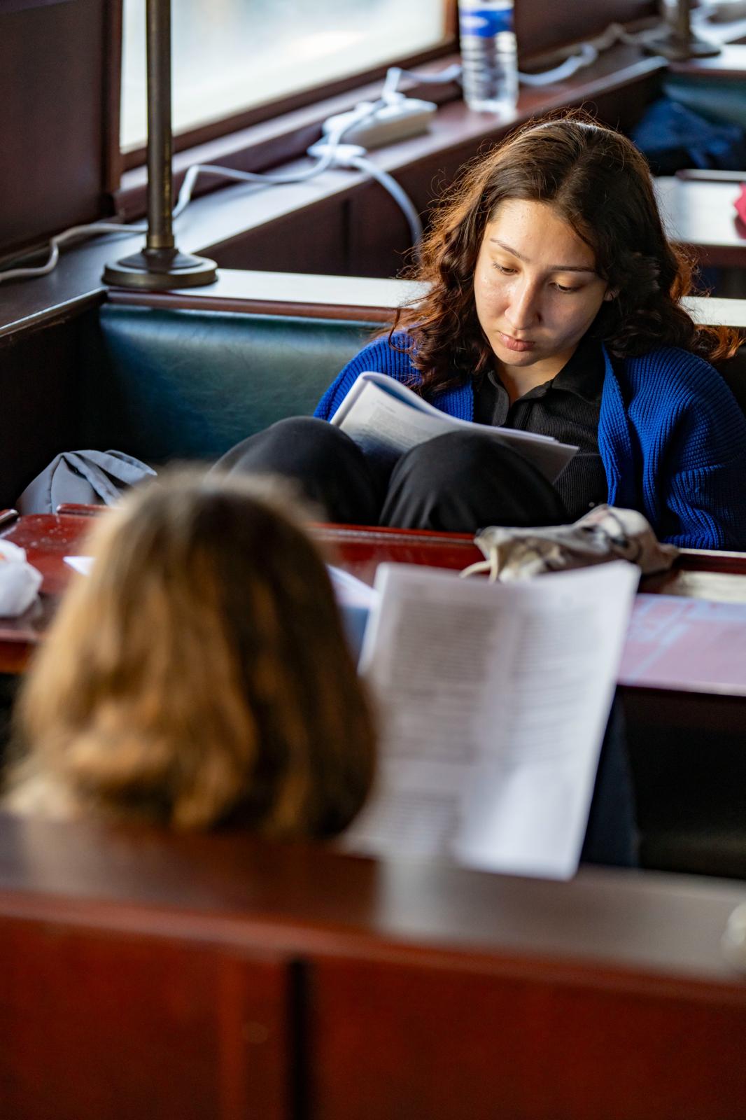 Vapurda sınava hazırlanan Ekinsu Zahide Günçü, ev ortamı biraz boğucu geldiği için genelde kütüphanede ders çalıştığını belirterek “Bütün kütüphaneleri deniyorum. Rotamız Üniversite projesini duyunca bir deniz dostu olarak buraya gelmek istedim. Kütüphaneler genellikle erken açılıp erken kapanıyor. Burasının geç saatte kapanması bizim için çok güzel oldu. Deniz manzaralı ve ferah bir yer. Çay, kahve, su, internet gibi avantajları olması sebebiyle burasını çok sevdik. Bu vapurun rotası bizim için üniversite” diye konuştu.