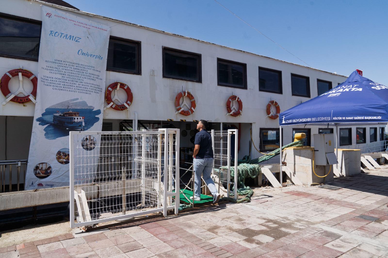 Konak İskelesi’nde demirleyen tarihi Bergama Vapuru, İzmir Büyükşehir Belediyesi Kütüphaneler Şube Müdürlüğü ve İZDENİZ iş birliğiyle YKS’ye hazırlanan gençler için alternatif bir çalışma alanı oldu. Gençlerin motivasyonlarını ve verimliliklerini artırmak amacıyla hayata geçirilen "Rotamız Üniversite" projesi kapsamında tarihi vapur 09.00-22.00 saatleri arasında hizmet veriyor. Sessiz, sakin, deniz manzaralı bir ortamda çay, kahve, su ve internet imkânlarından ücretsiz bir şekilde yararlanan gençler de projeyi çok yararlı buldu. Bergama Vapuru, arife günü dahil olmak üzere Kurban Bayramı boyunca da gençlerin hizmetinde olacak.