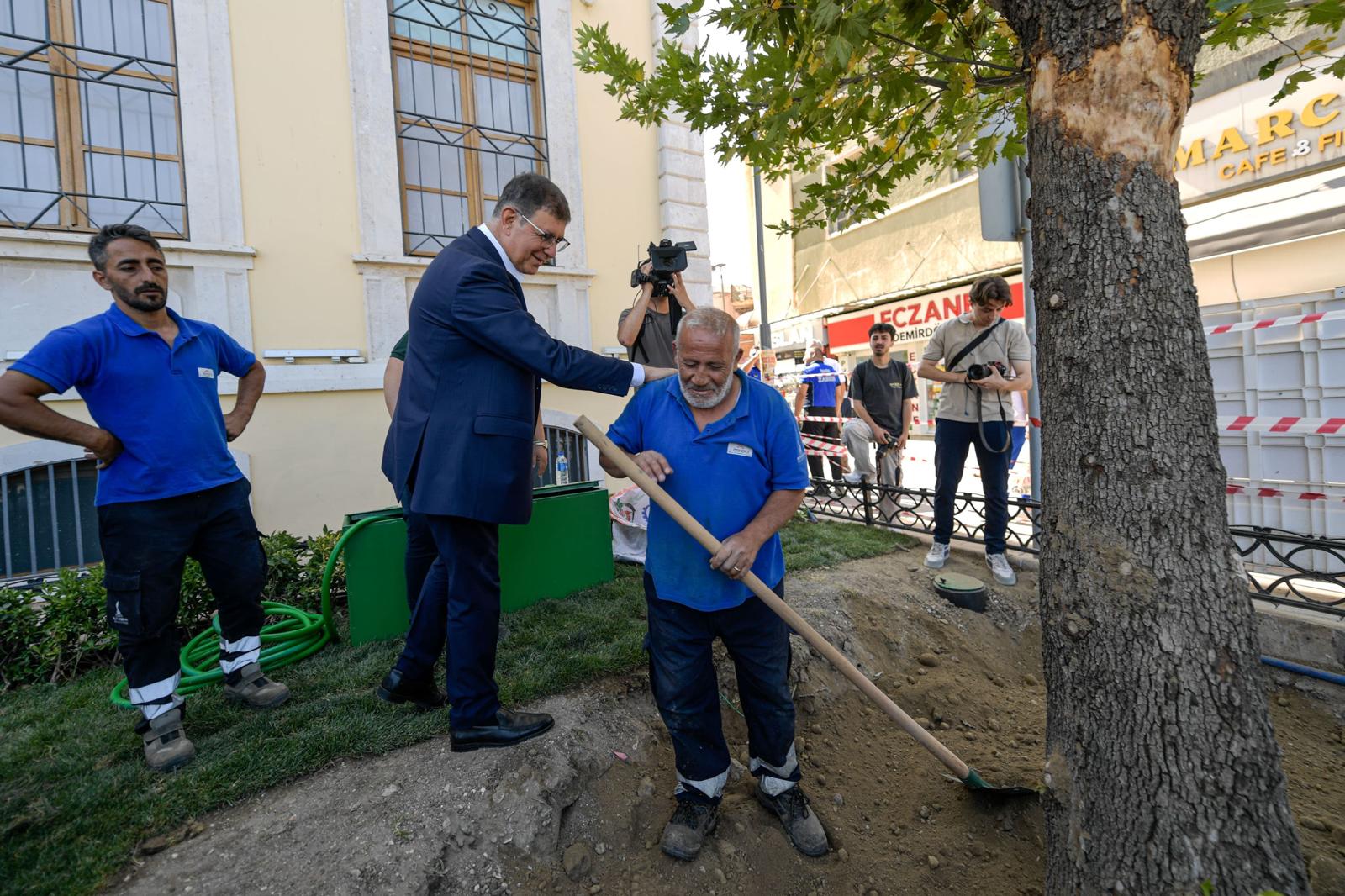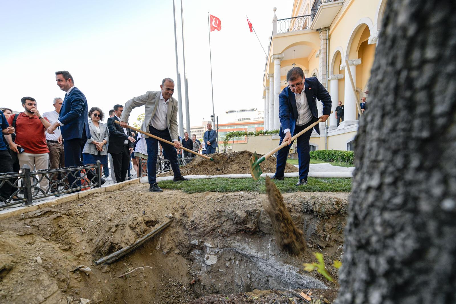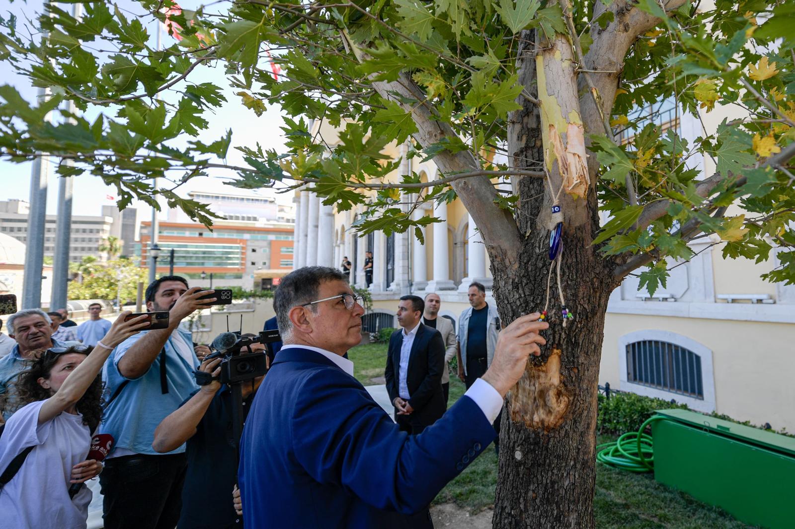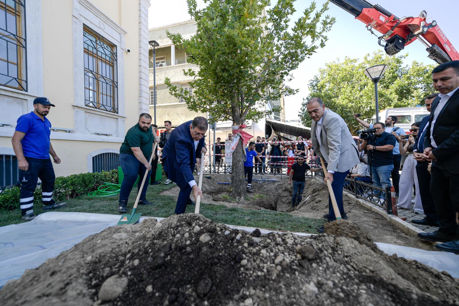İzmir Büyükşehir Belediye Başkanı Dr. Cemil Tugay, Konak Atatürk Meydanı’nın Kemeraltı Çarşısı girişinde bulunan ve geçtiğimiz günlerde kırılan çınar ağacının yerine kentin yeni sembollerinden olmaya aday doğu çınarını dikti. Ağaç dikiminde konuşan Başkan Tugay, “Onarılması gereken her türlü yaramızı onaracağız. Eksik olan her şeyi yerine koyacağız. İzmir’in değerini biliyoruz. Herkesin de İzmir’e değer vermesi için üstüne düşeni yapmasını bekliyoruz” dedi.