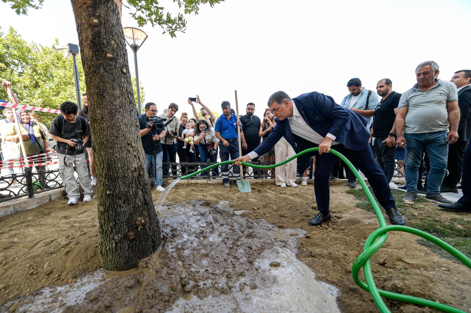 Dikimin ardından açıklama yapan Başkan Tugay, “Tam burada eski bir çınar ağacı vardı. Birkaç gün önce, gövdesindeki bir problem nedeniyle kendiliğinden kırıldı. Biz o ağacın yerinde eksiklik olmasın istedik. Herkesin çok üzüldüğünü gördük. Biz de çok üzüldük. Bunu telafi edelim, onaralım diye bu yetişkin çınar ağacını Ödemiş’ten getirdik. Yine İzmir’in ağacı. Orada saksılanmış bir şekilde bekliyordu. Doğaya, ağaca verdiğimiz önem, şehrin değerlerine verdiğimiz kıymet için buradayız. Hayırlı olsun diyelim. Onarılması gereken her türlü yaramızı onaracağız. Eksik olan her şeyi yerine koyacağız. İzmir’in değerini biz biliyoruz. Herkesin de İzmir’e değer vermesi için üstüne düşeni yapmasını bekliyoruz” ifadelerini kullandı.