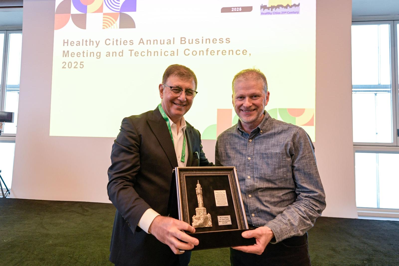 Başkan Tugay, program sonunda DSÖ ve Avrupa Sağlıklı Şehirler temsilcilerine plaket takdiminde bulundu.
