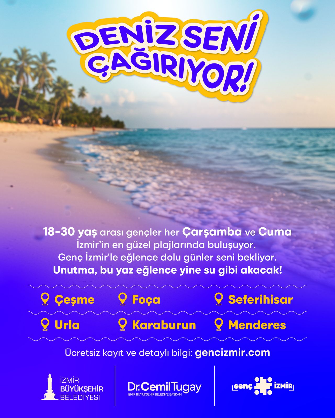 Haziran, temmuz, ağustos ve eylül ayları boyunca sürecek etkinlikler, İzmir’in en popüler ve doğal güzellikleriyle ünlü sahil ilçeleri olan Çeşme, Foça, Seferihisar, Urla, Menderes ve Karaburun’da düzenlenecek. Gençler, deniz ve güneşin tadını çıkarırken, plaj oyunları, su aktiviteleri ve sürpriz yarışmalarla enerjilerini deniz kenarında atacak; yaz boyunca sosyal ilişkilerini güçlendirme, yeni arkadaşlıklar kurma, doğayla iç içe keyifli vakit geçirme fırsatı yakalayacak ve unutulmaz anılar biriktirecek.