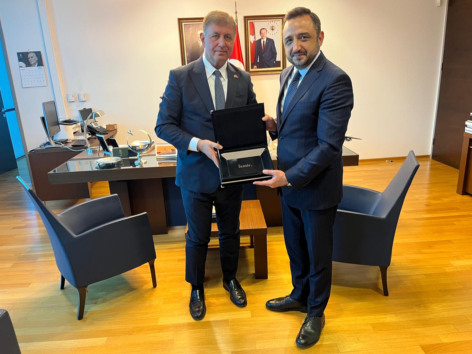 Başkan Tugay belediyeye yaptığı ziyaretin ardından Türkiye'nin Saraybosna Büyükelçisi Emin Akseki'yi ziyaret etti. İki ay önce başladığı büyükelçilik görevinden dolayı kendisini tebrik edip başarılar dileyen Başkan Tugay, Srebrenica Soykırımı ile ilgili duygu ve düşüncelerini paylaştı. Başkan Tugay, Saraybosna ile Türkiye ilişkilerinin arttırılması konusunda yerel yönetimlerin çok önemli olduğunu vurguladı. Görüşmede Saraybosna ile İzmir arasındaki direkt seferlerin artırılmasının çok önemli olduğuna dikkat çekilirken, Türk Hava Yolları’nın direkt uçuşlara başlaması gerektiği konuşuldu.