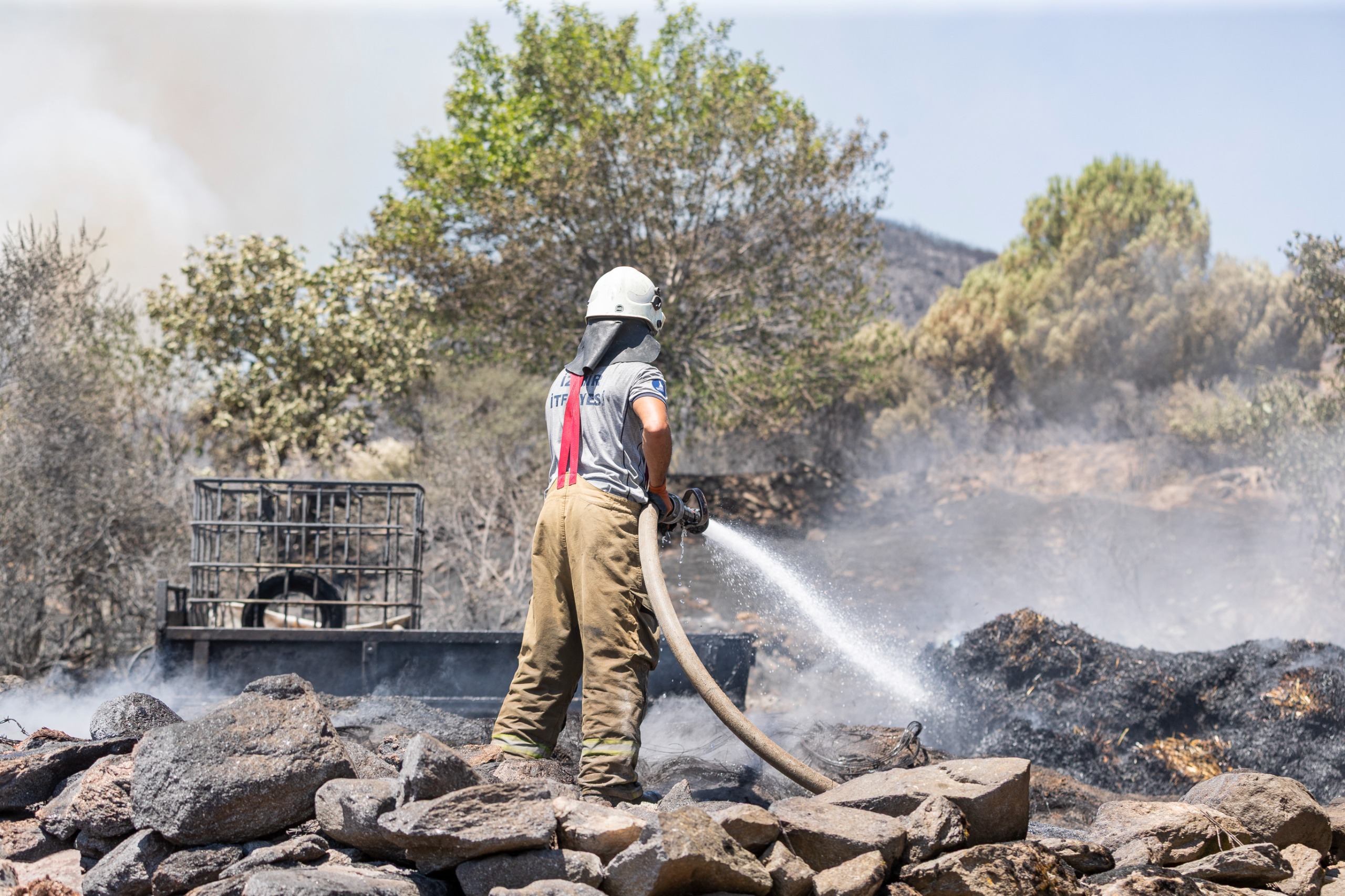 İzmir Büyükşehir Belediyesi İtfaiye Dairesi Başkanlığı ekipleri, 25 Haziran’da başlayıp, 3 Temmuz’a kadar kentin farklı noktalarında etkisini sürdüren orman yangınlarını kontrol altına almak için canı pahasına mücadele verdi. Ormanların yanı sıra yerleşim yerlerini de korumak için savaşan itfaiyeciler büyük felaketlerin önüne geçti. Orman yangınları sırasında izinli olan personel de gönüllü olarak görevinin başına döndü. İzmir Büyükşehir Belediyesi İtfaiye Dairesi Başkanlığı’nda toplam 1346 personel görev yapıyor. Bunlardan 870’i sahada çalışıyor.