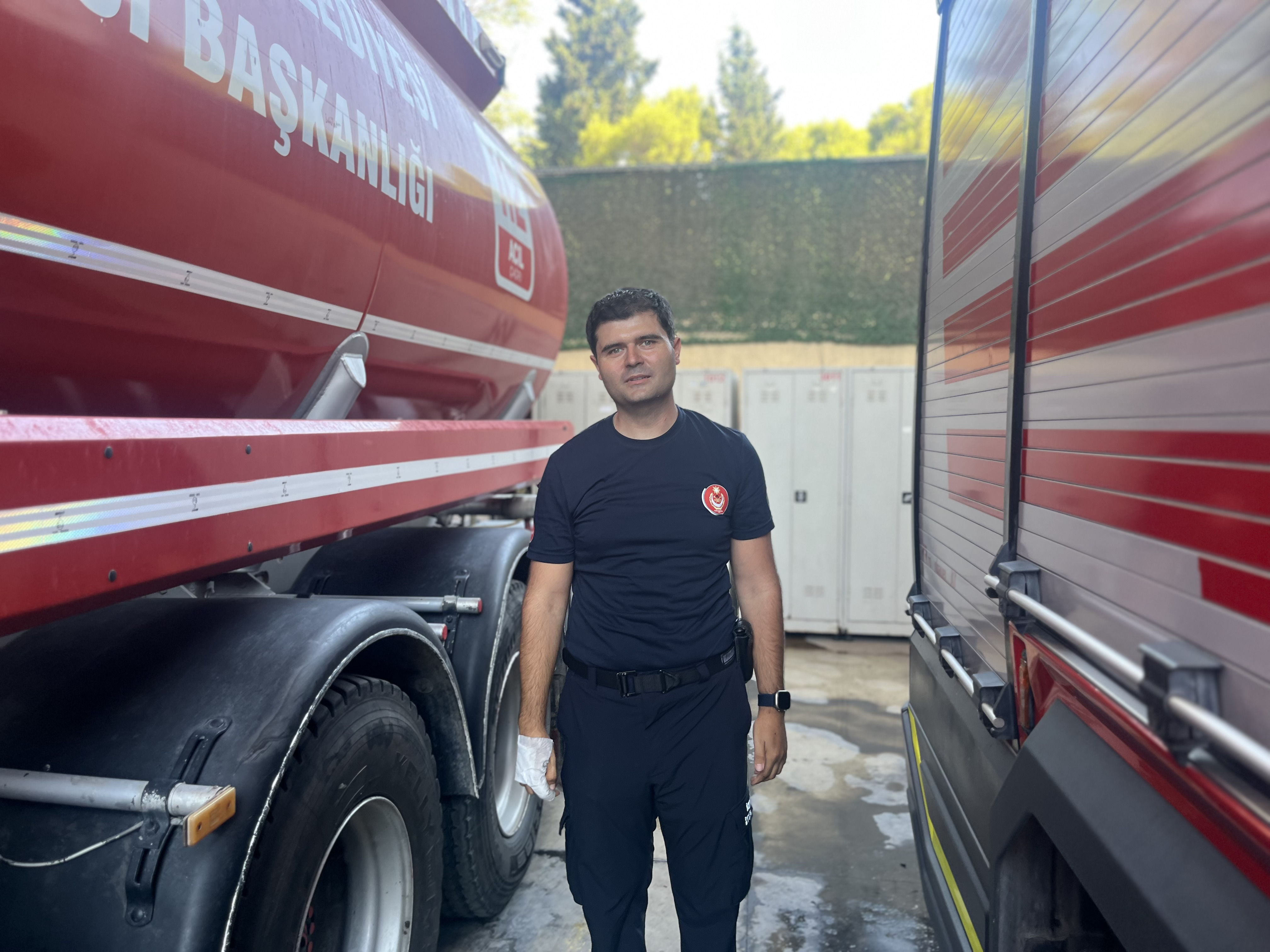 İtfaiyeci Özkan Mutlu ise orman yangınlarının yanı sıra kentte çıkan yangınlarla mücadele ederken yaralandı. Bornova Işıkkent’teki bir geri dönüşüm tesisinde çıkan yangına müdahale sırasında, kimyasal maddelerin etkileşimi ile yaşanan patlamadan etkilenen Mutlu’nun sağ elinde ikinci derecede yanık meydana geldi. Mutlu, “13 yıldır itfaiyeciyim. Tüm tedbirlerimizi aldığımız halde ilk defa bu yangına müdahale ederken yaralandım. Yaklaşık 2 bin santigrat derece ısı vardı. O nedenle patlama meydana geldi. Patlamadan dolayı elimde ikinci derecede yanık oluştu. Birçok yangına müdahale ettik. Patlamalar oluyordu ama bu kadar şiddetlisini ilk kez yaşadık. Bazen olaylar kontrolümüz dışında gelişebiliyor” diye konuştu.