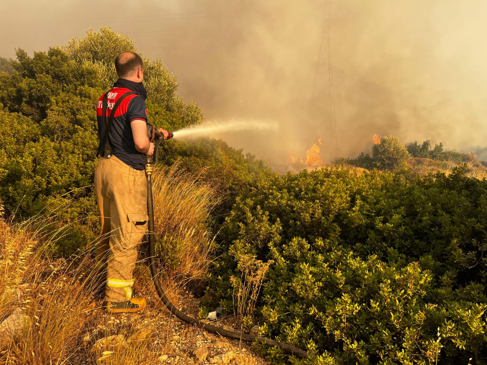 " Urla Camiatik Mahallesi ormanlık alanda çıkan yangına müdahale sürüyor " HABERİ İÇİN EK FOTOĞRAFLAR