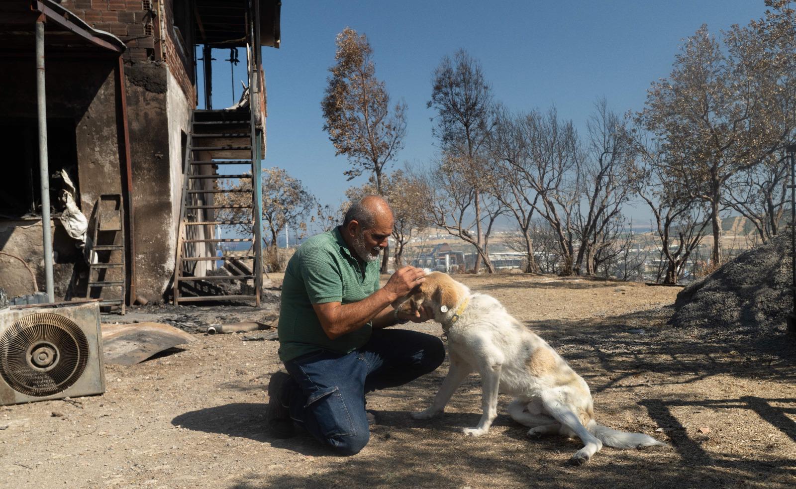 Kaptan'a kavuşunca büyük bir mutluluk yaşayan Fikri Altınkaya, “Neredesin sen? Hoş geldin oğlum. İyi misin?” diyerek köpeğe sarıldı. Altınkaya, “Yangının çıktığı gün ben onu yuvasından çıkardım. Aldım götürdüm. Ama geri kaçtı. Gece birisi görmüş, almış top sahasına bırakmış ama o eve gelmiş. Patileri yandı ama burayı terk etmedi. Sağ olsun İzmir Büyükşehir Belediyesi yetkilileri kedilerimizi, köpeklerimizi alıp tedavi etti. Aşılarını ve bakımlarını yaptı. Hepsine teşekkür ediyorum” diye konuştu.