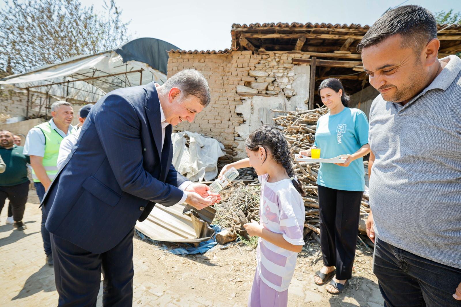 Başkan Tugay ilk olarak Karadoğan’ın merkezinde köy halkıyla sohbet etti, taleplerini dinledi. Bu sırada geçen haftaki bölge ziyaretinde yanan evleri için gözyaşı döken minik Aysima ile karşılaştı. Başkan Tugay, bu kez güler yüzüyle kendisini karşılayan Aysima’ya ev sözünü bir kez daha yineledi. Başkan Tugay, tüm birimleriyle aşama aşama çalışmalara başlayacaklarını ifade etti. Sohbetin ardından Başkan Tugay, Aysima’nın hasar gören evini de yerinde inceledi.