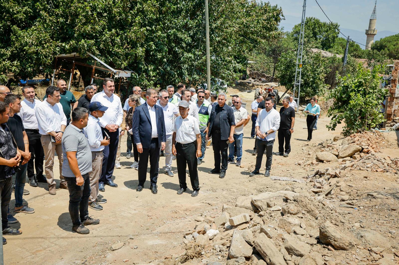 İzmir Büyükşehir Belediye Başkanı Dr. Cemil Tugay, Ödemiş’teki yangında en çok zarar gören Karadoğan Mahallesi’nde inceleme yaptı. Yangından etkilenen köylerin kış öncesi yeniden ayağa kaldırılması için kararlılık mesajı veren Başkan Tugay, yıl sonuna kadar yanan köylerden su faturası alınmayacağını söyledi. Başkan Tugay, “Çocuklara sözümüz, yaşlılara sözümüz, engelli insanlarımıza sözümüz. Kimsenin mağdur olmasına, sahipsiz olmasına izin vermeyeceğiz. Biz buradayız” dedi.