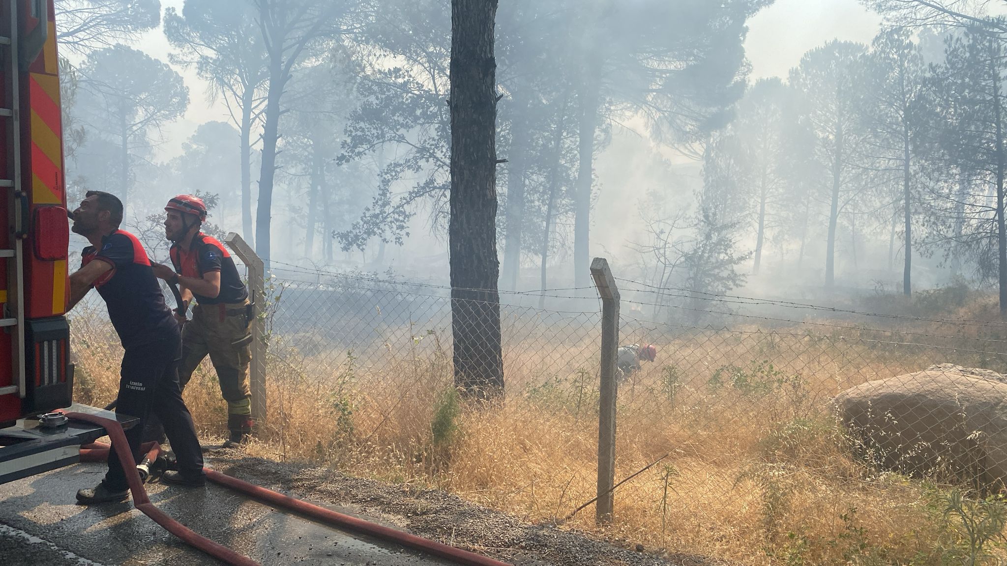 İzmir Büyükşehir Belediyesi İtfaiye Dairesi Başkanlığı da yangına hemen müdahale etti. Alevlerin yerleşim yerlerine ulaşmaması için önlem alan ekipler, çalışmalarını sürdürüyor. İzmir Orman Bölge Müdürlüğü de havadan ve karadan yangına müdahale ediyor.