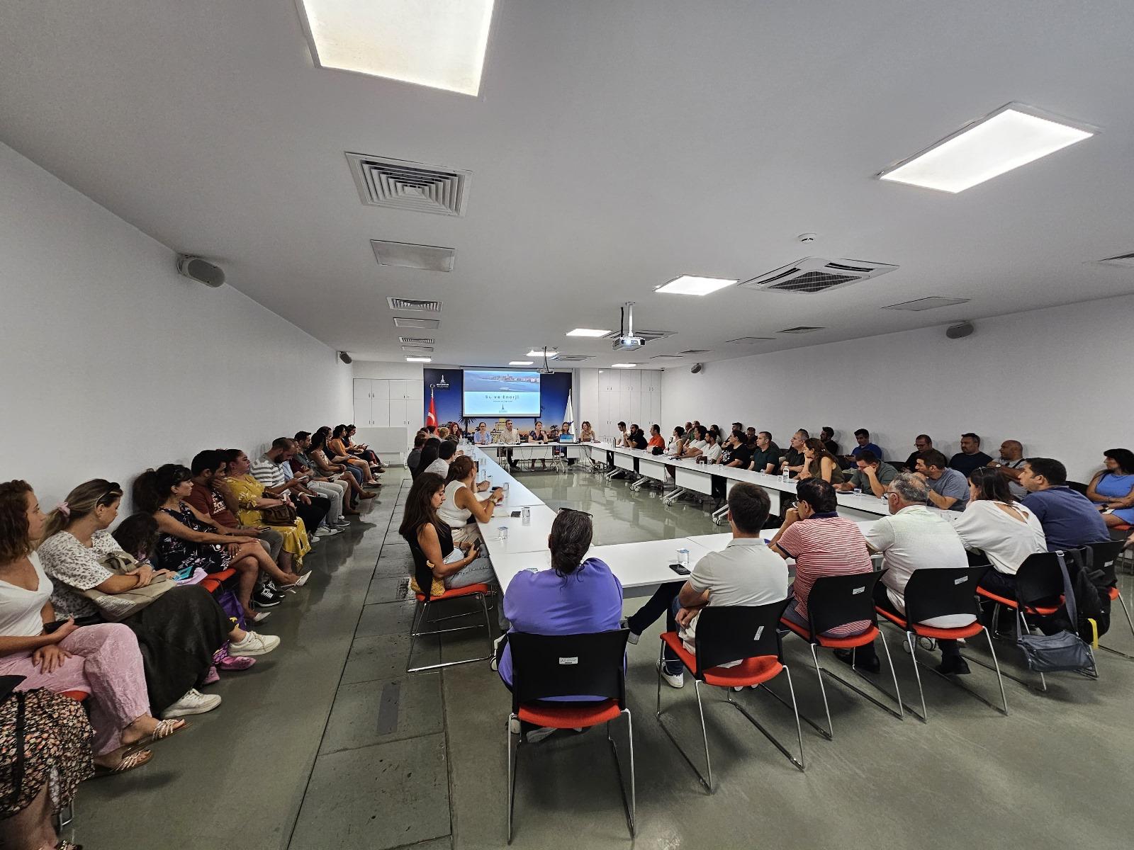 İzmir Büyükşehir Belediyesi İklim Değişikliği ve Sıfır Atık Dairesi Başkanlığı İklim Değişikliği ve Temiz Enerji Şube Müdürlüğü’nün kurum içi ve ilçe belediyelerine yönelik düzenlediği eğitimlerden biri de Kültürpark 1 No’lu Hol’deki Çetin Emeç Toplantı Salonu’nda oldu. “Su ve Enerji Yönetimi” başlıklı eğitimde iklim değişikliği ve enerji alanında yapılan çalışmalar, İzmir Büyükşehir Belediyesi’nin “Su ve Enerji Kaynakları Kullanım Talimatnamesi ve tasarruf konuları ele alındı.