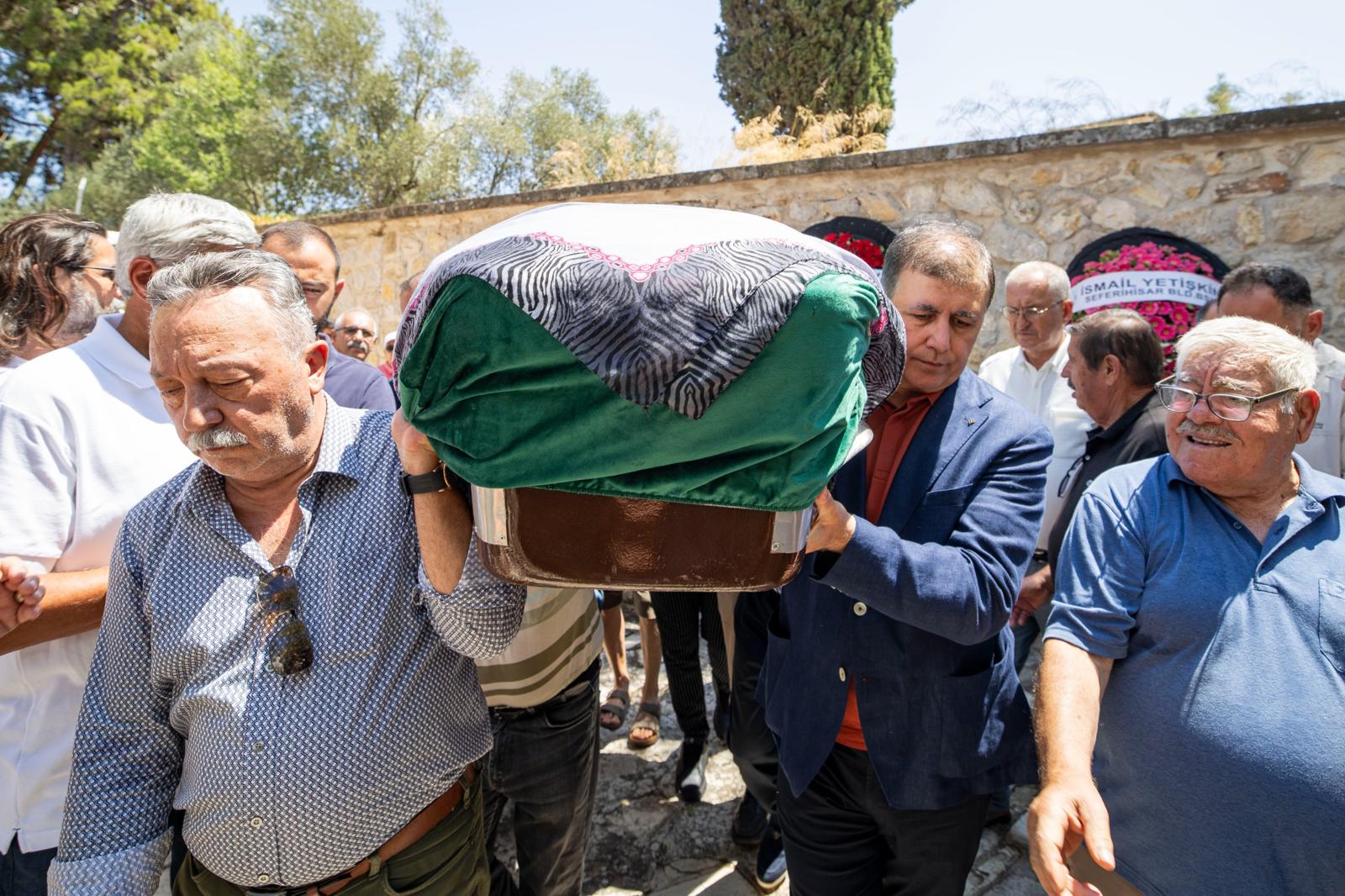 Başkan Tugay, cenaze namazı öncesi Tacettin Bayır ve Bayır ailesine başsağlığı diledi. Güler Bayır’ın cenazesi Ayşe Kadın Camii’ne getirilerek cenaze namazı kılındı. Omuzlar üstünde taşınan cenaze, dualar eşliğinde Mordoğan Salabahçe Mezarlığı’nda toprağa verildi.