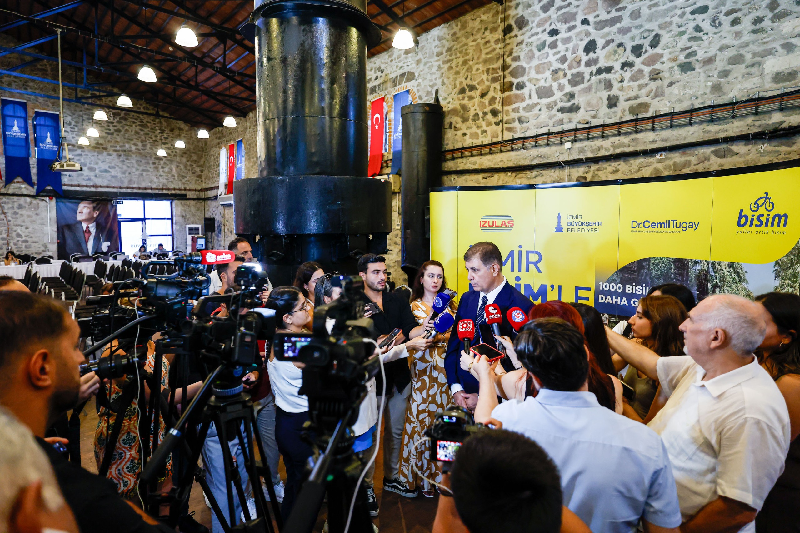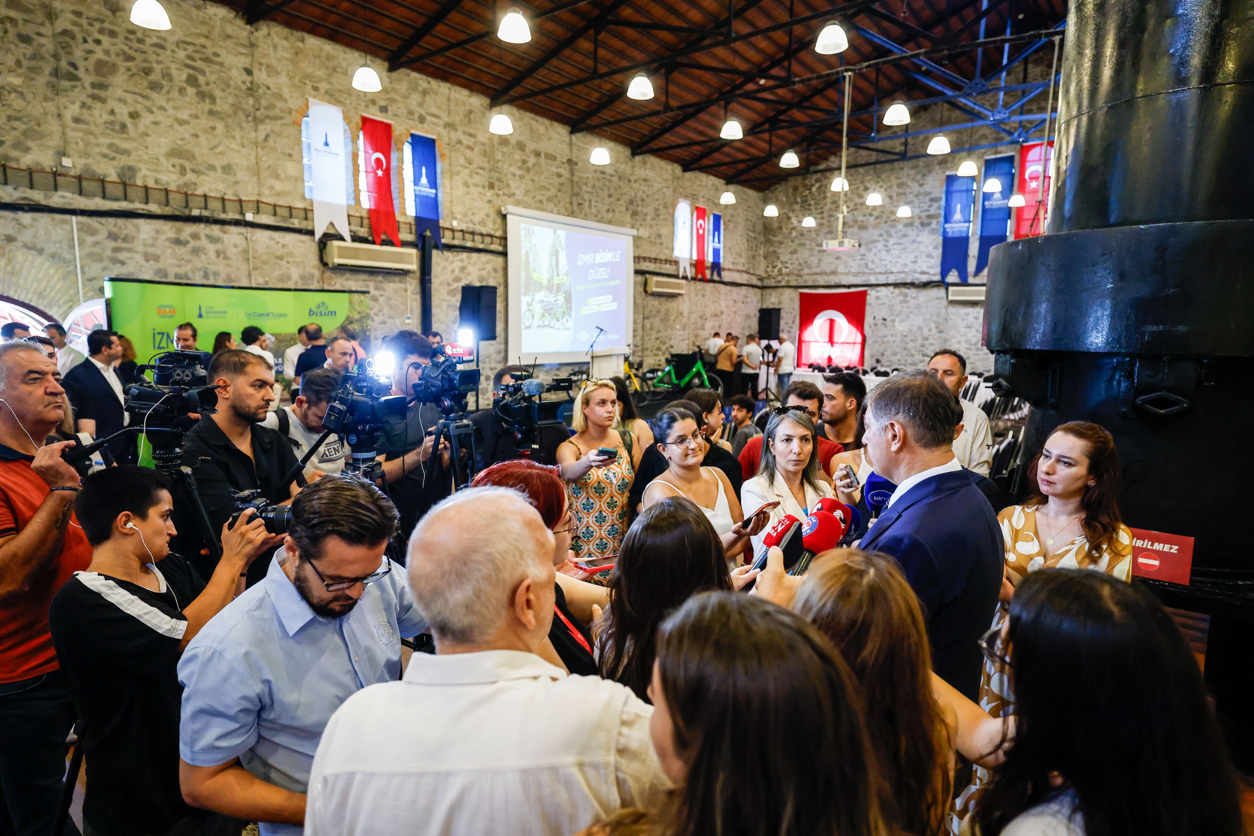 İzmir Büyükşehir Belediye Başkanı Dr. Cemil Tugay, BİSİM tanıtım toplantısının ardından basın mensuplarının kent gündemine ilişkin sorularını yanıtladı. İzmir’de yaşanan su sorunu, ulaşım projeleri gibi soruları yanıtlayan Başkan Tugay, çöp konusu üzerine de “İnsanlarımız merak etmesin, en kısa zamanda yazılı bir doküman haline getireceğimiz Çöp Master Planı’na uygun olarak kentimizde geri dönüşüm atıklarını topladığımız, ayrıştırdığımız tesislerimiz, organik atıkları kompost yaptığımız tesislerimiz, inşaat atıklarını uygun şekilde parçalayıp depoladığımız alanlarımız, mobilya atıklarını bertaraf ettiğimiz alanlarımız, tehlikeli atıkların bertaraf alanı olacak. Dünyanın en modern şehrinde ne yapılıyorsa o şekilde çöplerimiz toplanacak, ayrıştırılacak, bertaraf edilecek. Çevreye bir gram zararı olmayacak. Bu çalışmayı yapacağız” dedi.