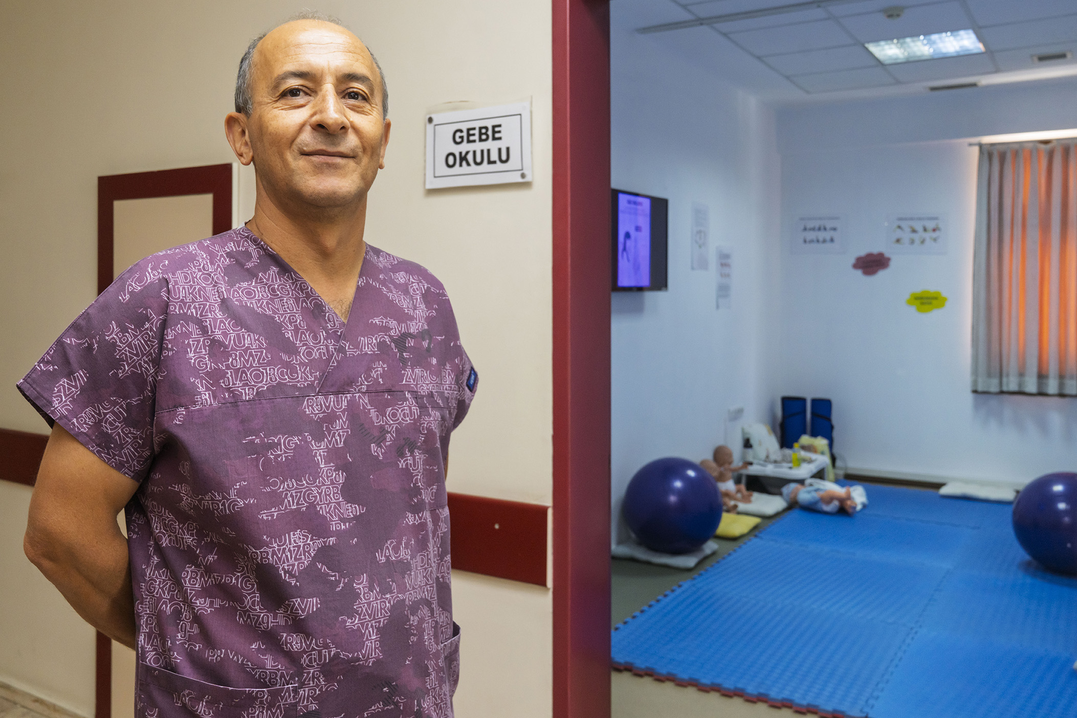 Gebe Okulu hakkında bilgi veren Kadın Hastalıkları ve Doğum Uzmanı Dr. Ercan Koru, “Sağlık Bakanlığı tarafından hemen hemen tüm hastanelerde Gebe Okulu kuruluyor. Bu kapsamda İzmir Eşrefpaşa Hastanesi Gebe Okulu da açıldı. Gebelik her ne kadar doğal bir süreç olsa da gebelik ve doğum, kadınlar için bir kaygı yaratabiliyor. Gebelik Okulu, hem gebeliğin hem doğum sürecinin bir fizyolojik olay olduğunu anlatabilmek amacıyla hizmet veriyor. Burada sadece gebelik hakkında değil, doğum sonrası ile emzirme süreci ve bebek bakımı hakkında da bilgilendirme yapılıyor. 20. gebelik haftasından sonra tüm gebelerimizi bilgilendirme üzere Gebe Okulu’na bekliyoruz” dedi.
