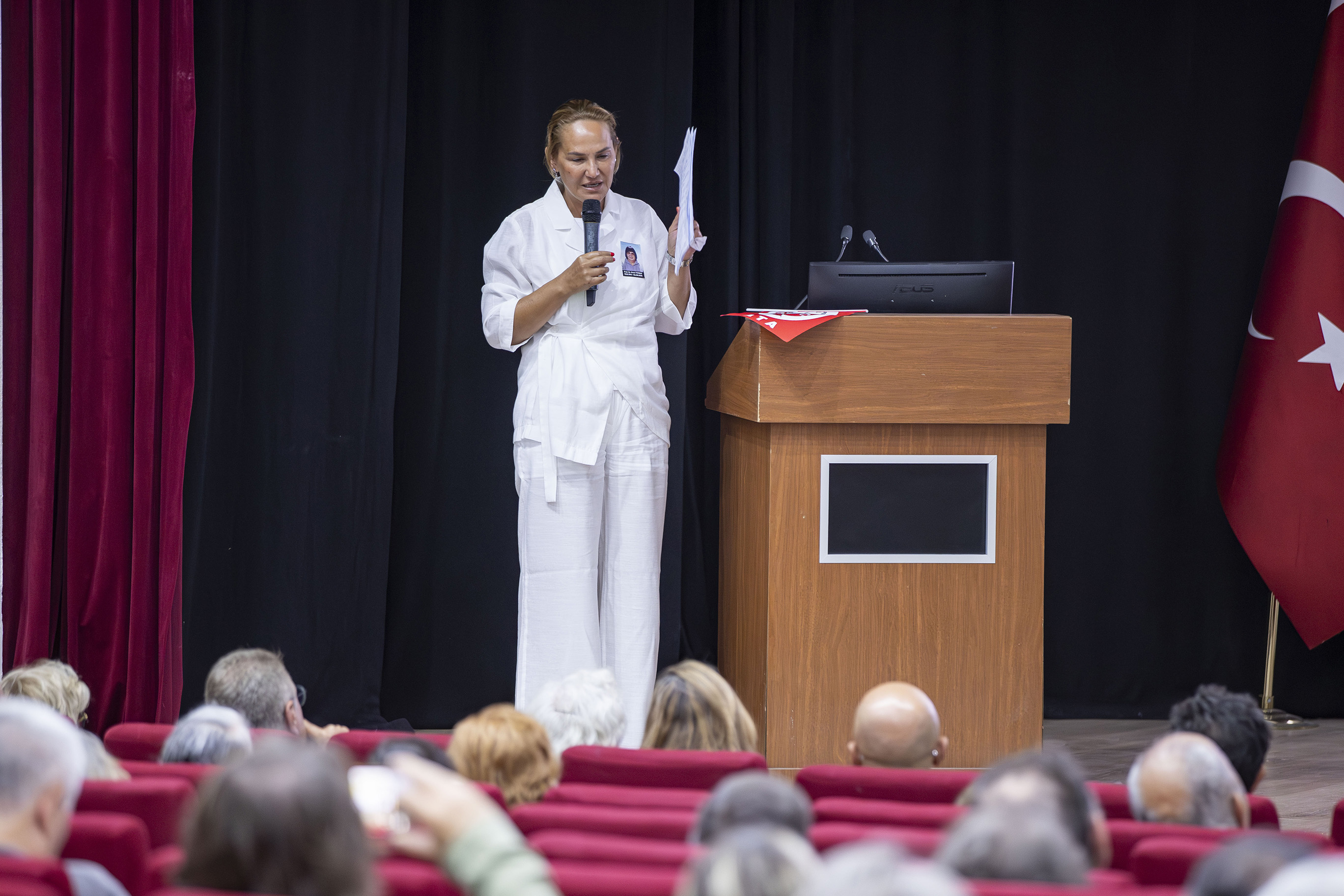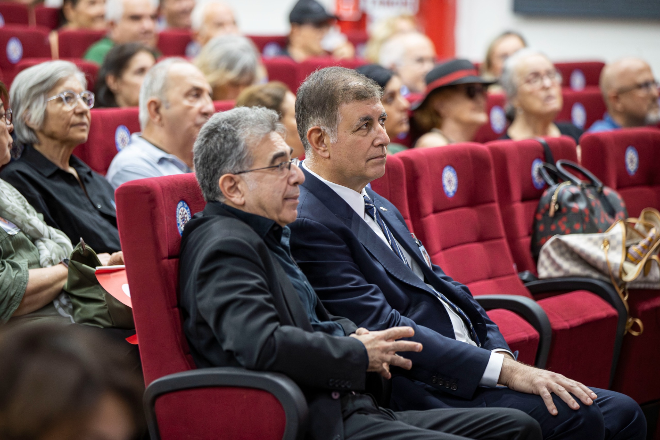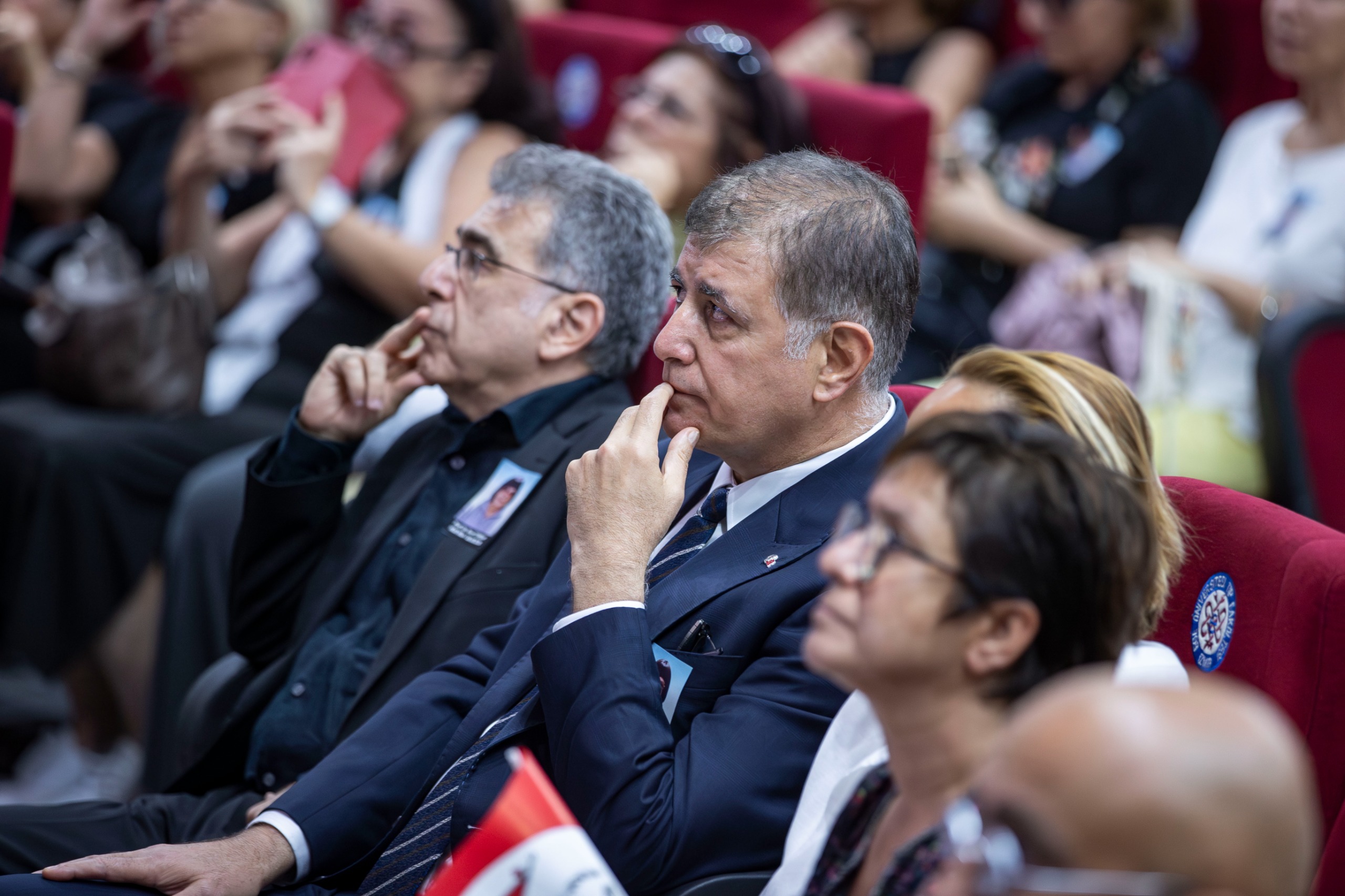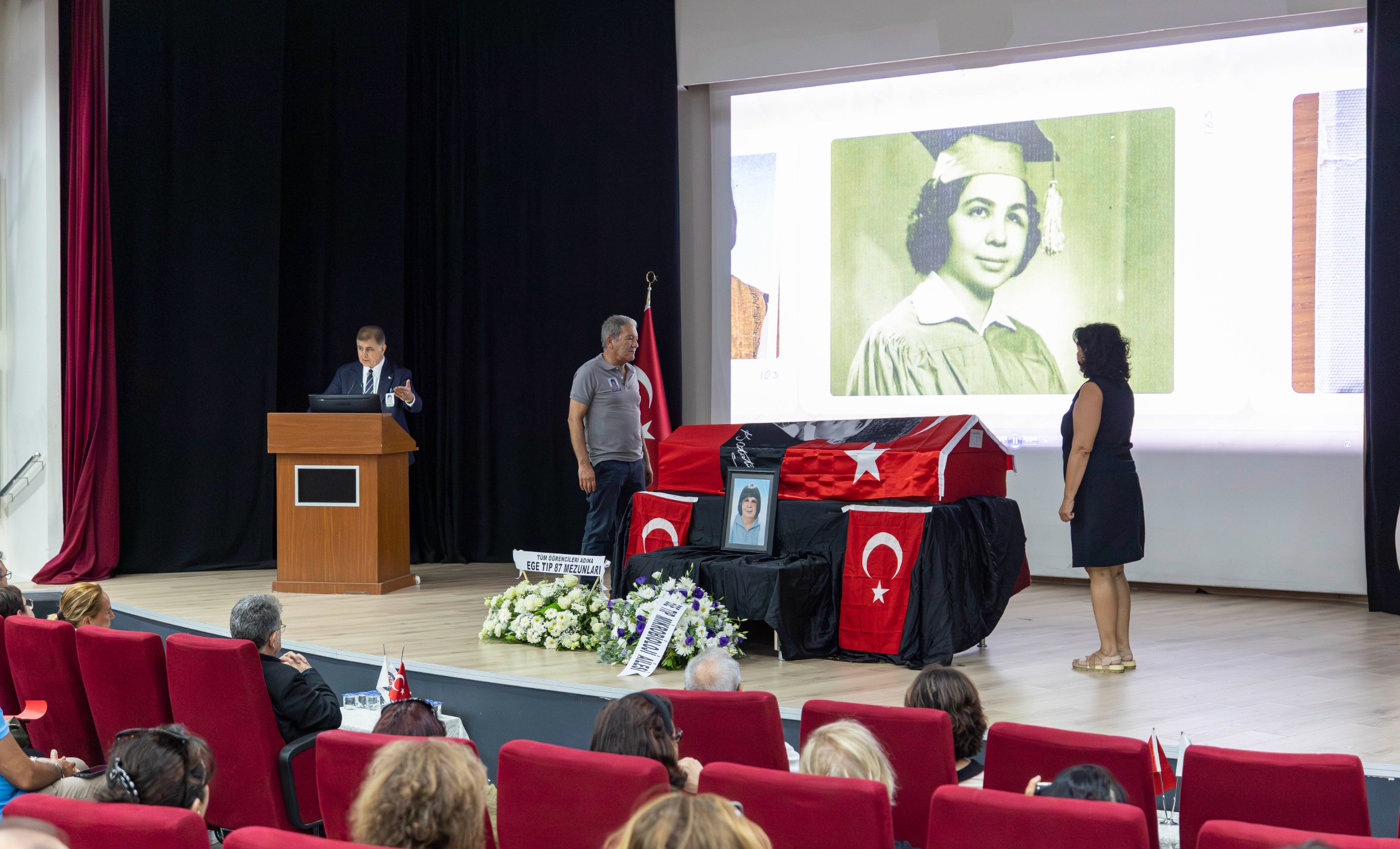 Törende Tümbay ile ilgili anılarını anlatan Başkan Tugay, “Bu okul benim okulum. Burada sınıf arkadaşlarım var. Bizler Emel Tümbay’ın öğrencileriyiz. Bu amfide, bu hastanede sadece doktor olmadık, aynı zamanda bazı değerleri buralarda öğrendik. Bize doktorluğun hasta tedavi etmekten çok insanların hasta olmasını önlemek olduğunu, koruyucu hekimliği, toplum sağlığını, ülkesini ve insanları sevmeyi, insanlara farklılıkları olursa olsun eşit ve adil davranmayı öğrettiler. Ege Üniversitesi Tıp Fakültesi bizim için adeta bir mabettir. Biz, genlerine bu değerlerin işlenmiş olduğu insanlarız” sözlerine yer verdi.