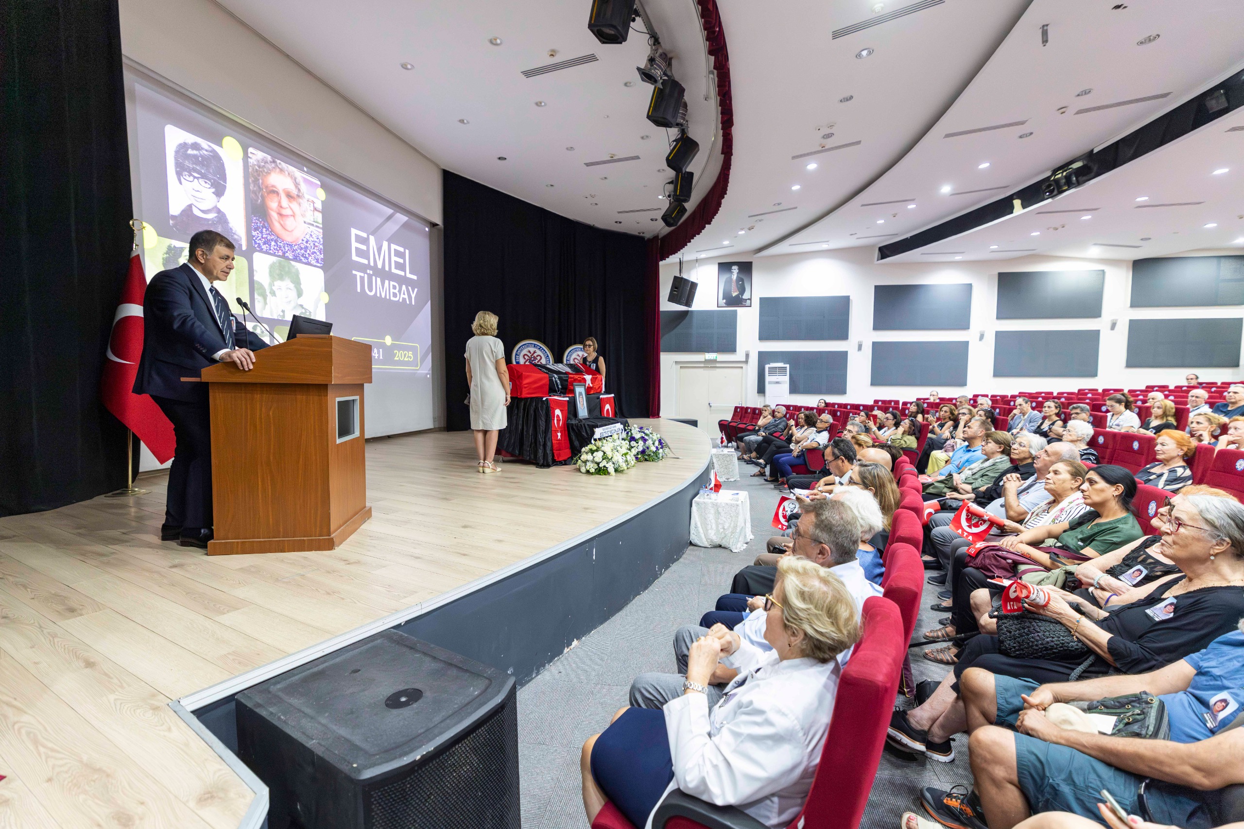 Törende Ege Üniversitesi Tıp Fakültesi Tıbbi Mikrobiyoloji Anabilim Dalı Emekli Öğretim Üyesi Prof. Dr. Süleyha Hilmioğlu Polat tarafından ömrünü adeta bilime adayan Emel Tümbay’ın özgeçmişi okundu. Ardından Tümbay’ın öğrencileri ve çalışma arkadaşlarından oluşan akademisyenler ona dair anılarını anlattı. Ege Üniversitesi Tıp Fakültesi Başhekim Yardımcısı Prof. Dr. Tahir Atik de “Öğretim üyesi olarak bu kurumun temellerini atan çok değerli hocamızı saygıyla anıyorum. Onu ebediyete uğurlamak üzücü olsa da arkasında bıraktığı değerler, insanlar, kurumun temellerindeki altın değerindeki taşlar çok kıymetli. Bu şekilde gidebilme gururu ve onuru umarım bütün öğretim üyelerine nasip olur” dedi.