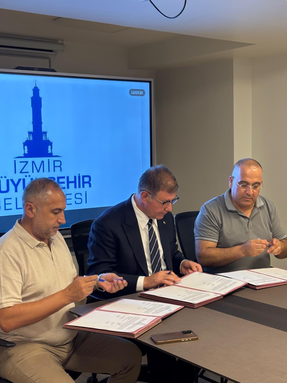İzmir Büyükşehir Belediyesi ve iştiraklerinde iki toplu sözleşme daha anlaşmayla noktalandı. Grand Plaza'da Türkiye Otel, Lokanta, Dinlenme Yerleri İşçileri Sendikası (TOLEYİS), Türkiye Gıda ve Yardımcı İşçileri (TEKGIDA-İŞ) ve Türkiye, Ticaret, Kooperatif, Eğitim, Büro ve Güzel Sanatlar İşçileri (TEZ-KOOP-İŞ) sendikaları ile İztarım AŞ'de Türkiye TEKGIDA-İŞ ile TEZ-KOOP -İŞ arasında 13 saat süren toplu sözleşme görüşmelerinde mutabatkat sağlandı. Şirket çalışanlarına 1 Temmuz 2025’ten itibaren geçerli olmak üzere yüzde 30, ikinci altı ay TÜFE +1 oranında zam yapıldı. Toplu iş sözleşmesini İzmir Büyükşehir Belediye Başkanı Dr. Cemil Tugay, TEKGIDA-İŞ 7 No'lu Şube Başkanı Ömer Atabey, TOLEYİS İzmir Şube Başkanı Mustafa Çelik, TEZ-KOOP -İŞ 2 No'lu Şube Başkanı Ali Ayna imzaladı.