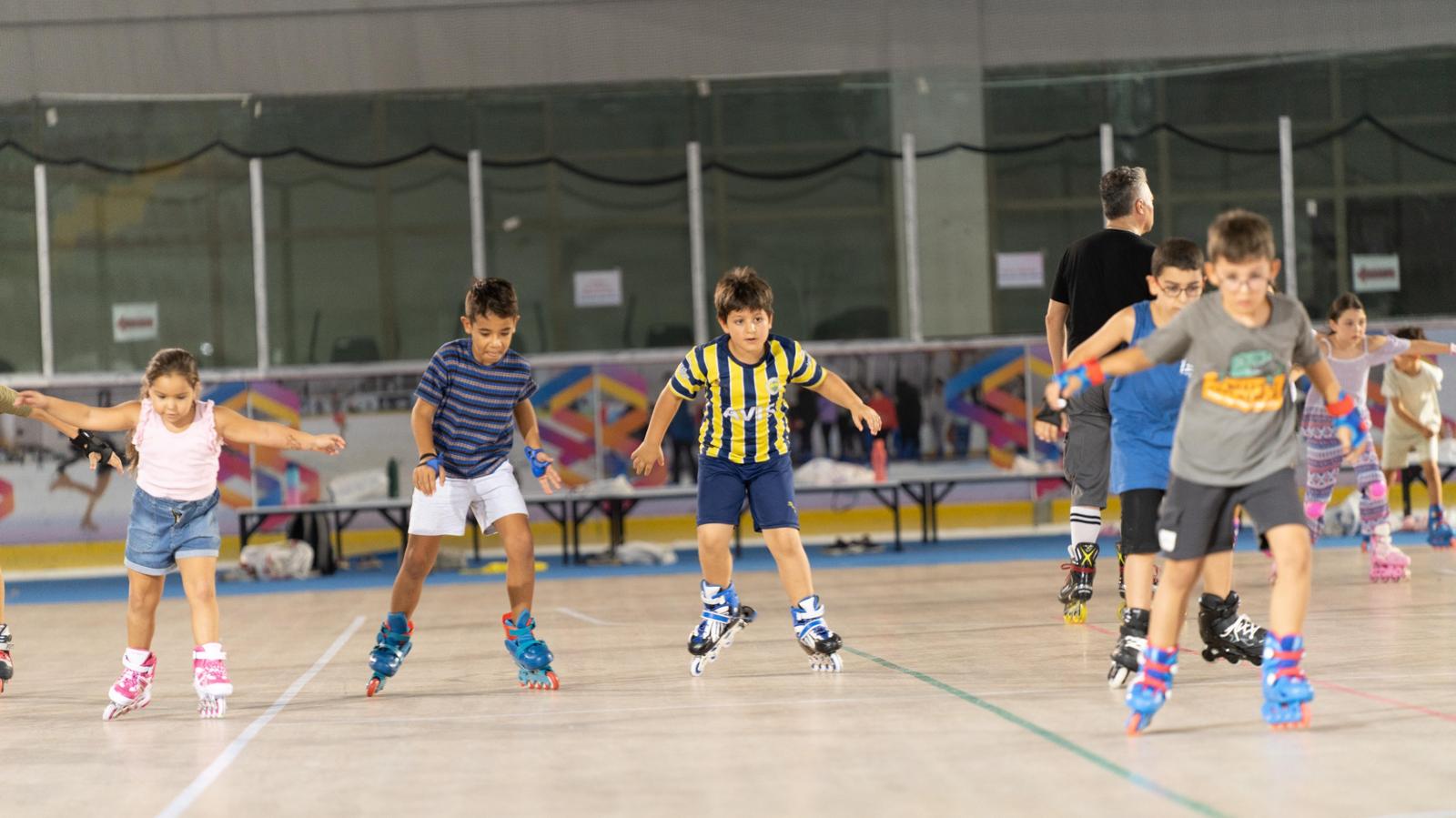 Yazın farklı spor branşlarında da hizmet sunulabilmesi amacıyla Bornova'daki Âşık Veysel Rekreasyon Alanı'nda bulunan Buz Sporları Salonu'nun zeminini yenileyen İzmir Büyükşehir Belediyesi’nin bu yıl ilk kez hayata geçirdiği tekerlekli paten kursları sürüyor. Çocuklar da veliler de eğitimden memnun.
