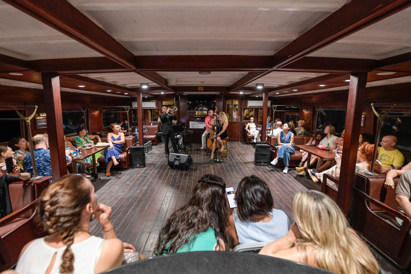 İzmir Körfezi, İzmir Büyükşehir Belediyesi’nin iştiraklerinden İZDENİZ AŞ’nin organizasyonuyla Tarihi Bergama Vapuru’nda düzenlenen Caz Gecesi etkinliğine sahne oldu. İzmirliler Körfez’in eşsiz manzarası ve Nükhet Yalçın Jazz Quartet’in müziği eşliğinde keyifli bir akşam geçirdi.