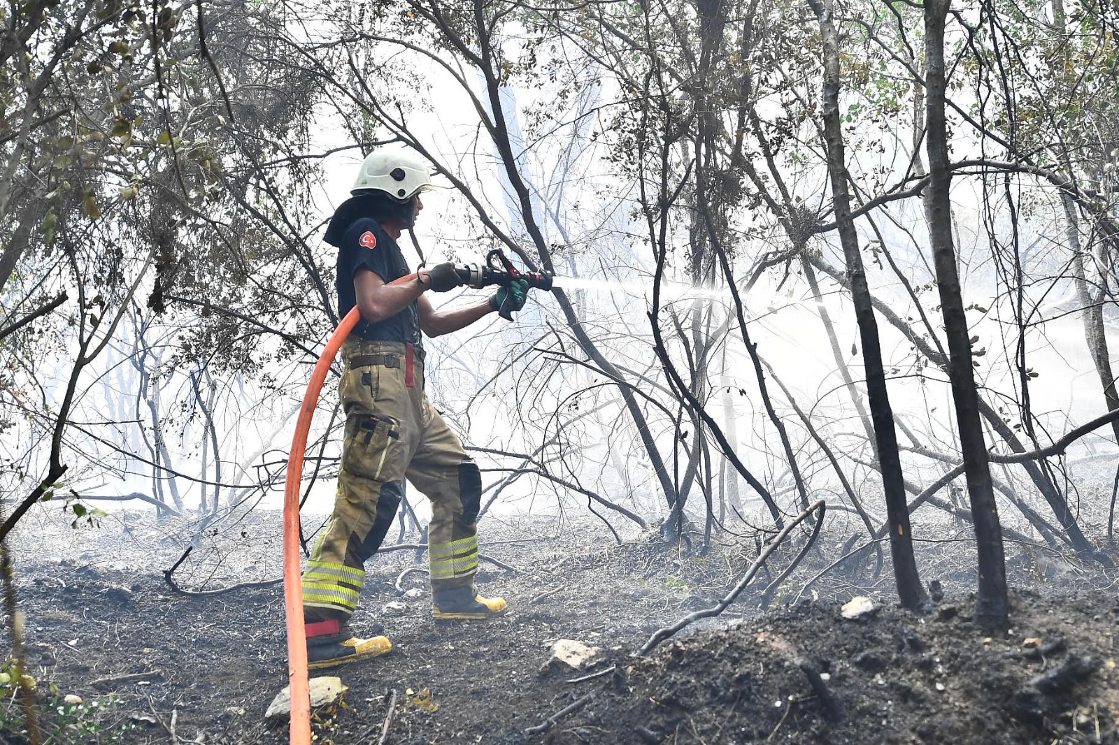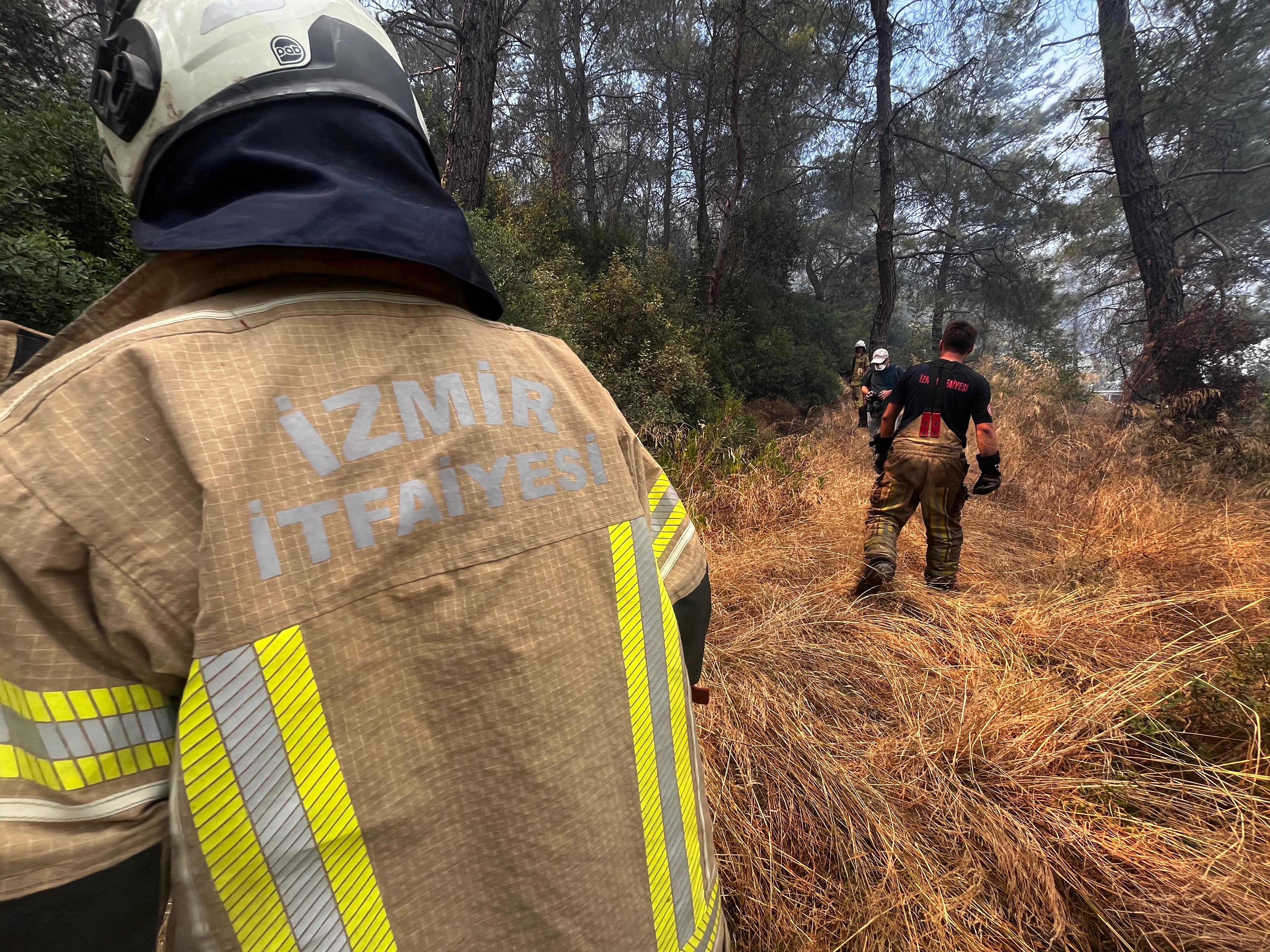 İzmir’in Menderes ilçesinde öğle saatlerinde başlayan orman yangını, rüzgârın da etkisiyle kısa sürede geniş bir alana yayıldı. Yangına İzmir Büyükşehir Belediyesi İtfaiye ekipleri ile İzmir Orman Bölge Müdürlüğü ekipleri müdahale ediyor. Alevlerle mücadeleye muhtarlar ve gönüllüler de İzmir Büyükşehir Belediyesi’nin köylere dağıttığı su tankerleriyle destek veriyor.