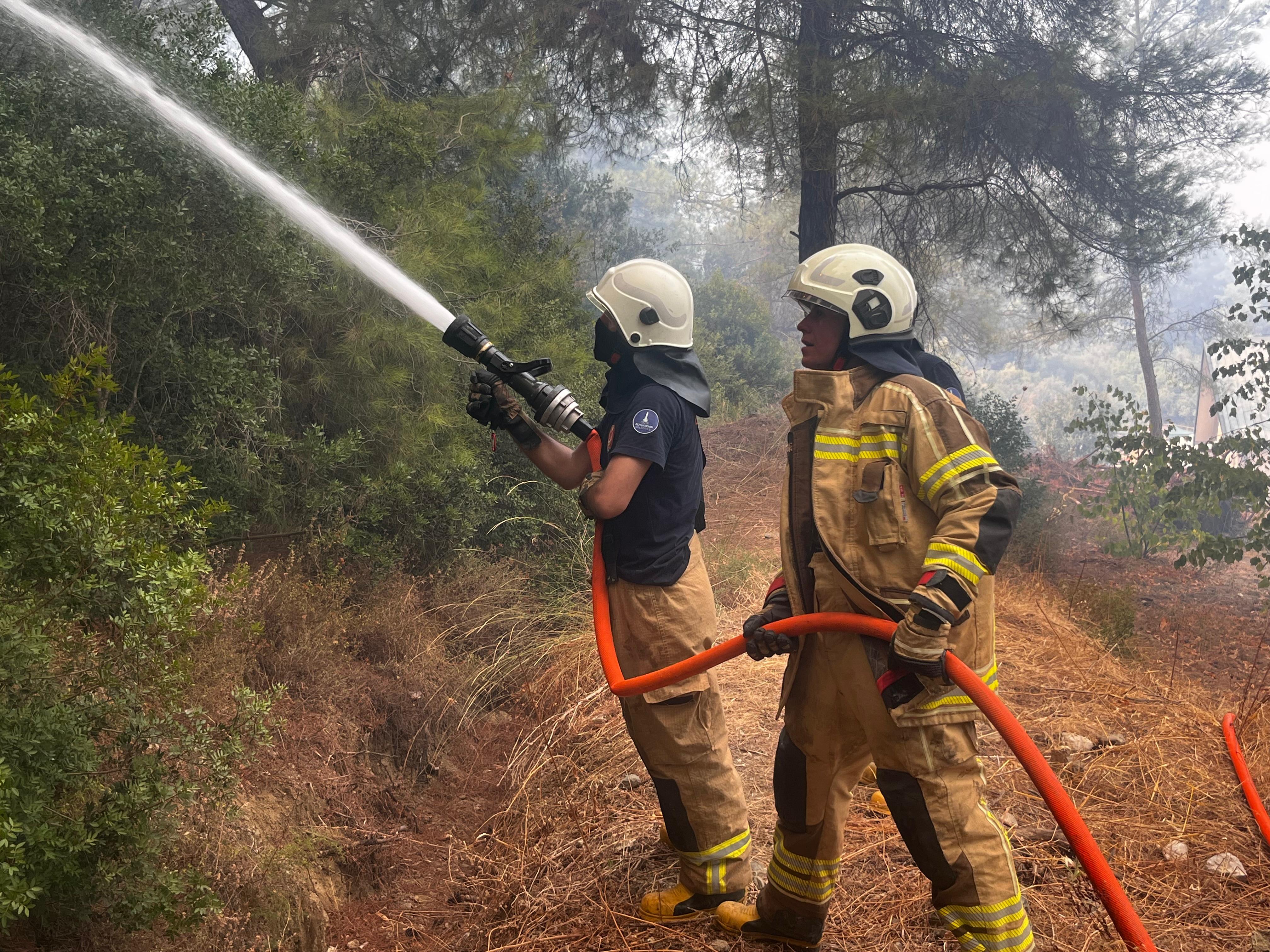 İzmir İtfaiyesi Menderes’te alevlerle mücadele ediyor